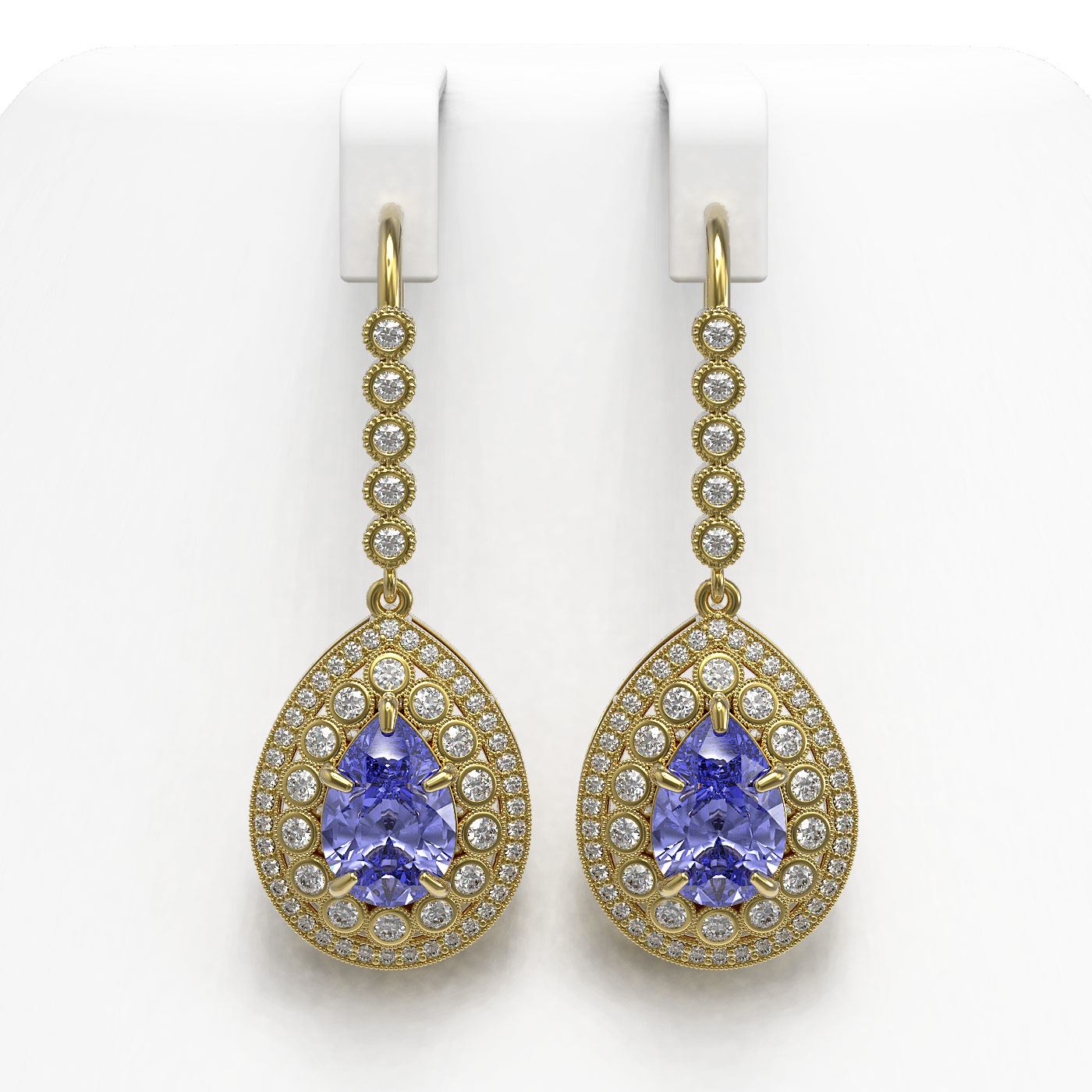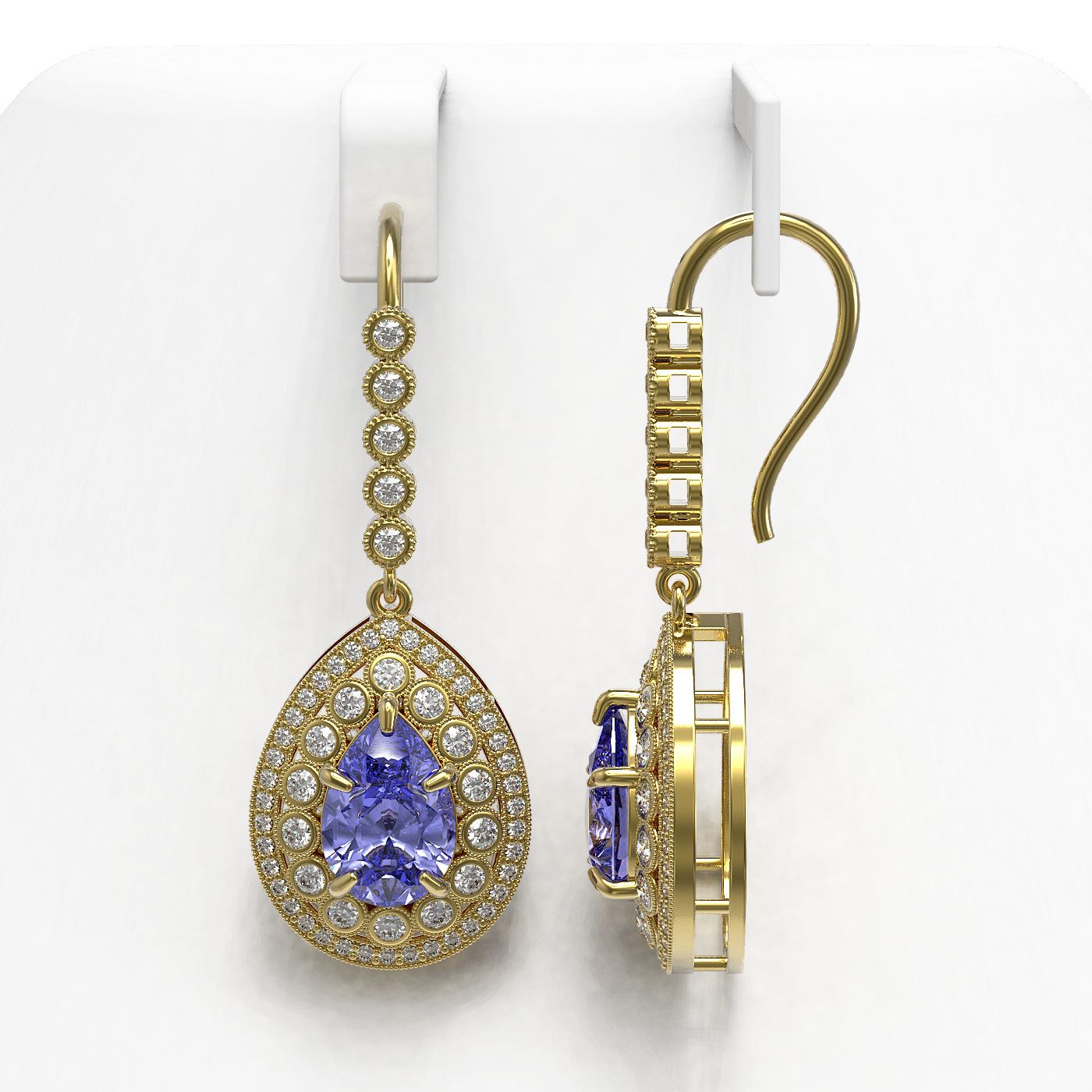 REF-345K5Y - SKU: 43156 ---- 8.95 ctw Tanzanite & Diamond Victorian Earrings 14K Yellow Gold