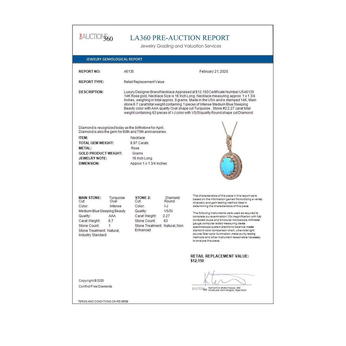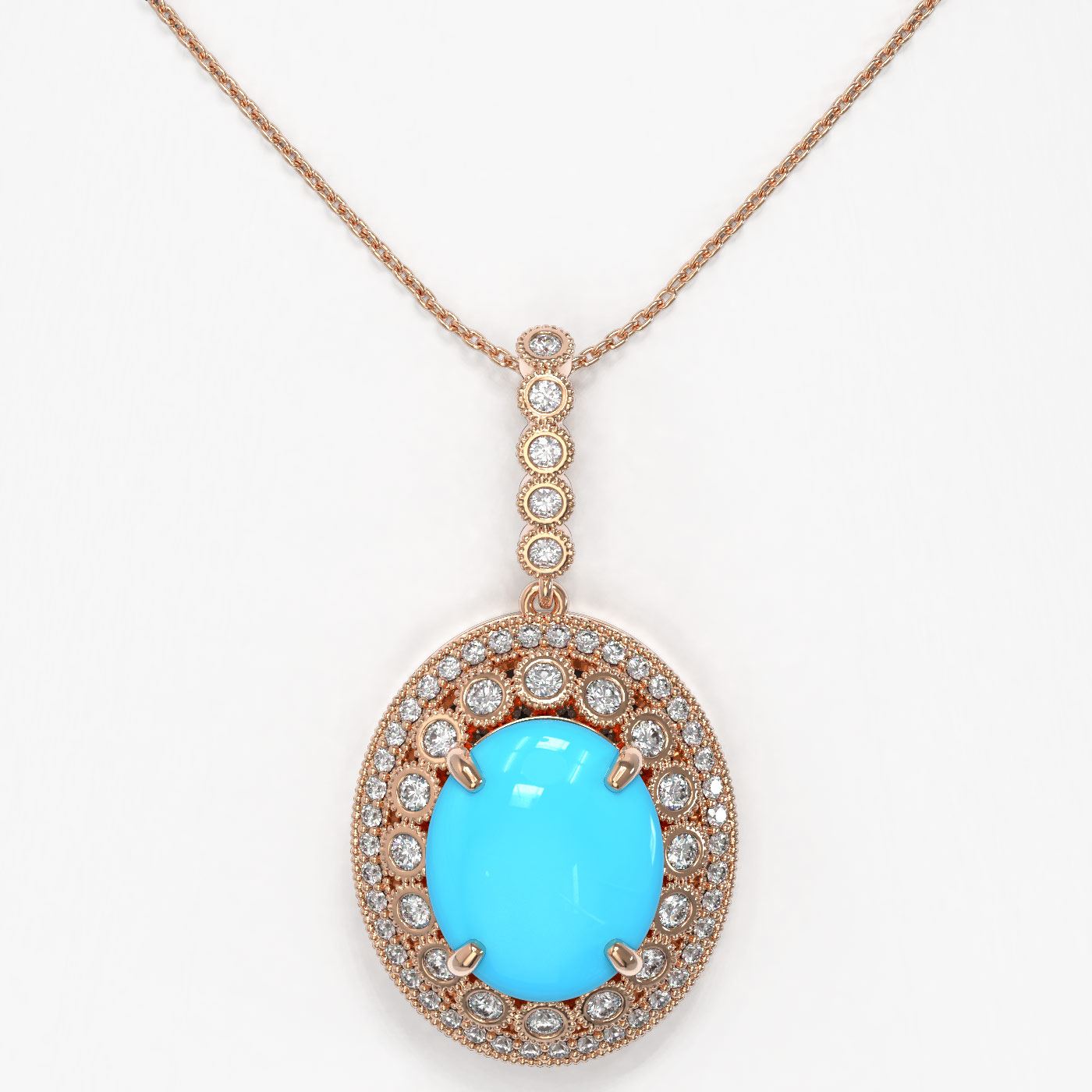 REF-245W5H - SKU: 46135 ---- 8.97 ctw Turquoise & Diamond Victorian Necklace 14K Rose Gold