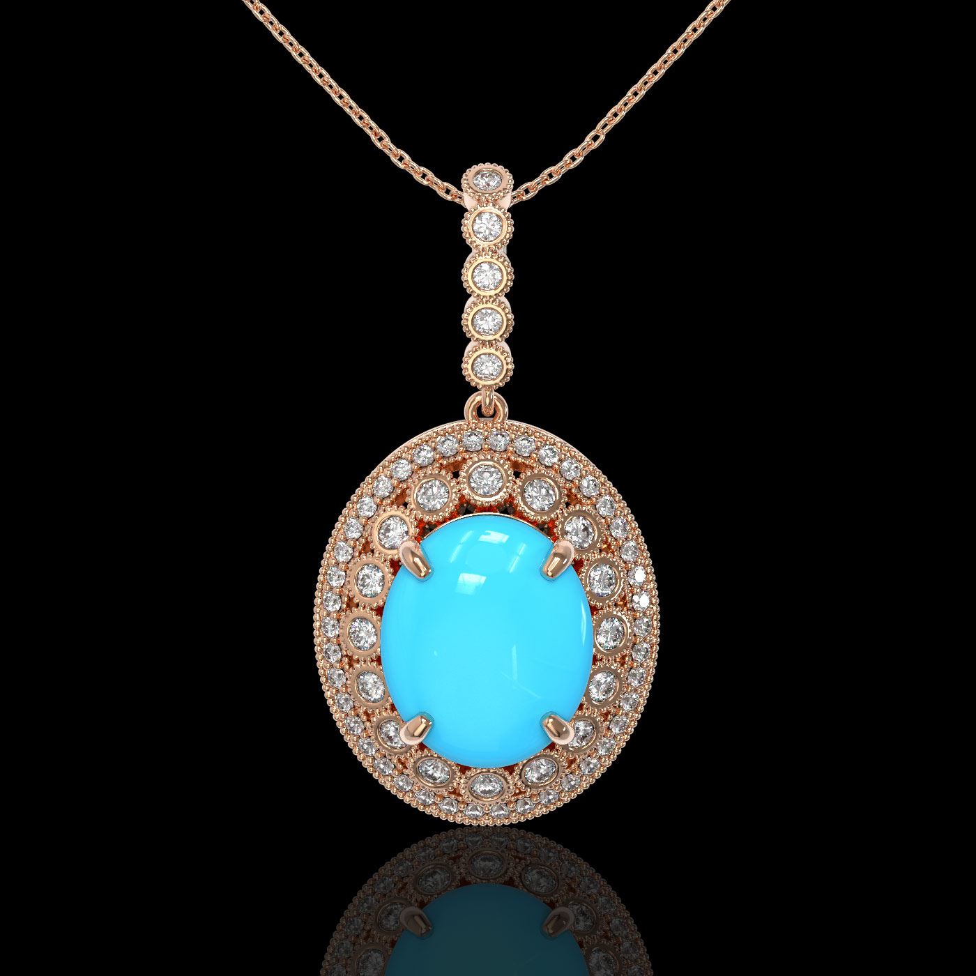 REF-245X5A - SKU: 46135 ---- 8.97 ctw Turquoise & Diamond Victorian Necklace 14K Rose Gold