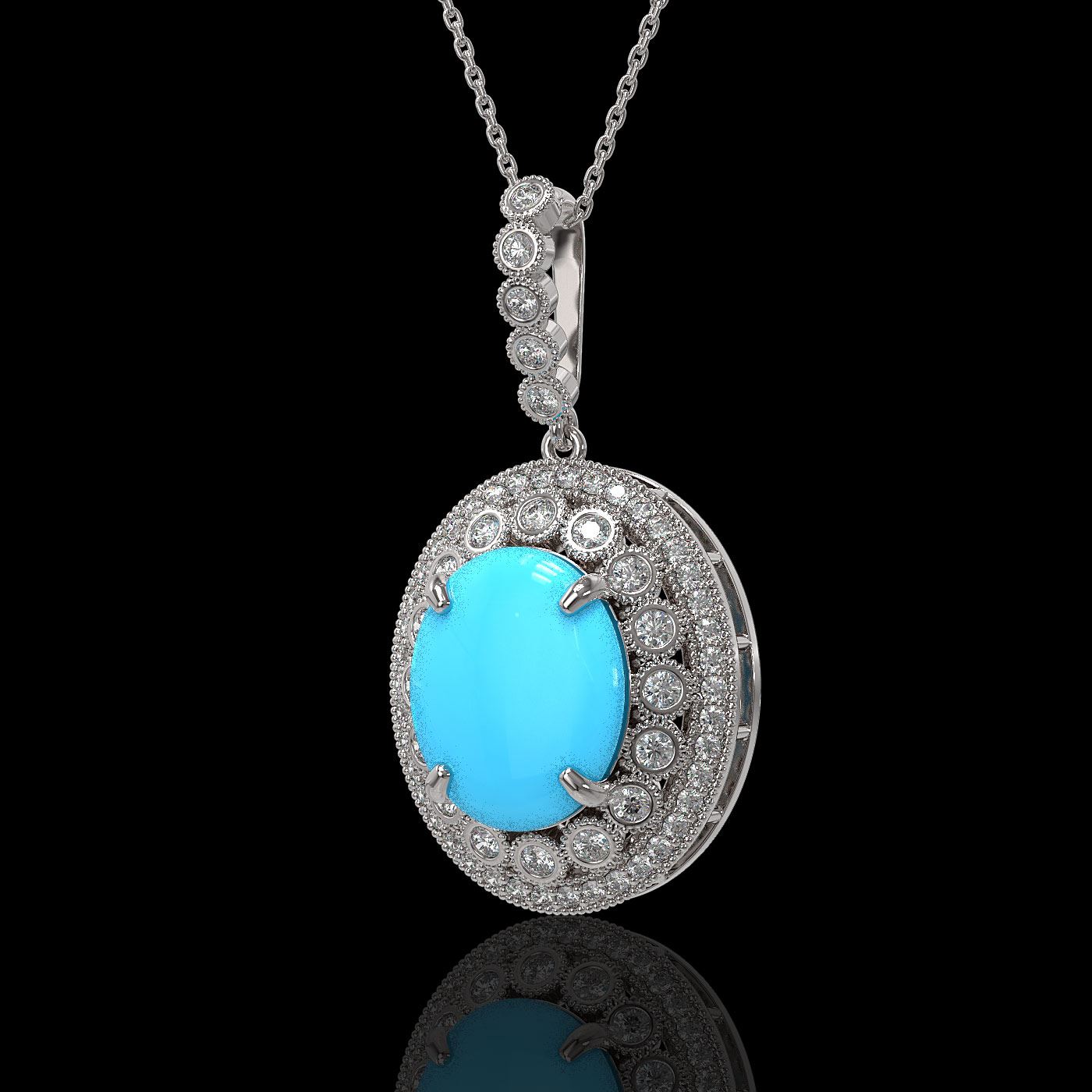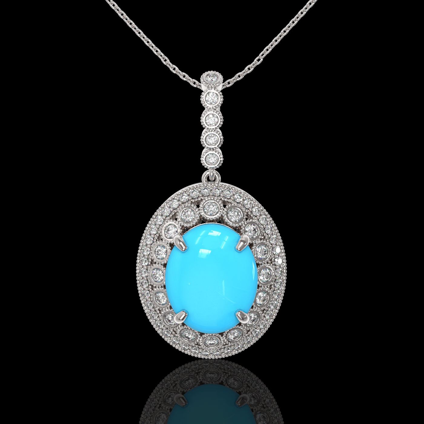 REF-245K5Y - SKU: 46134 ---- 8.97 ctw Turquoise & Diamond Victorian Necklace 14K White Gold
