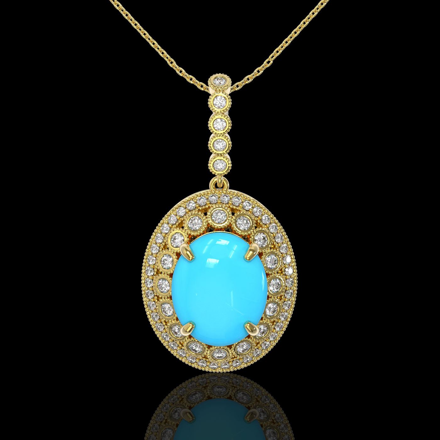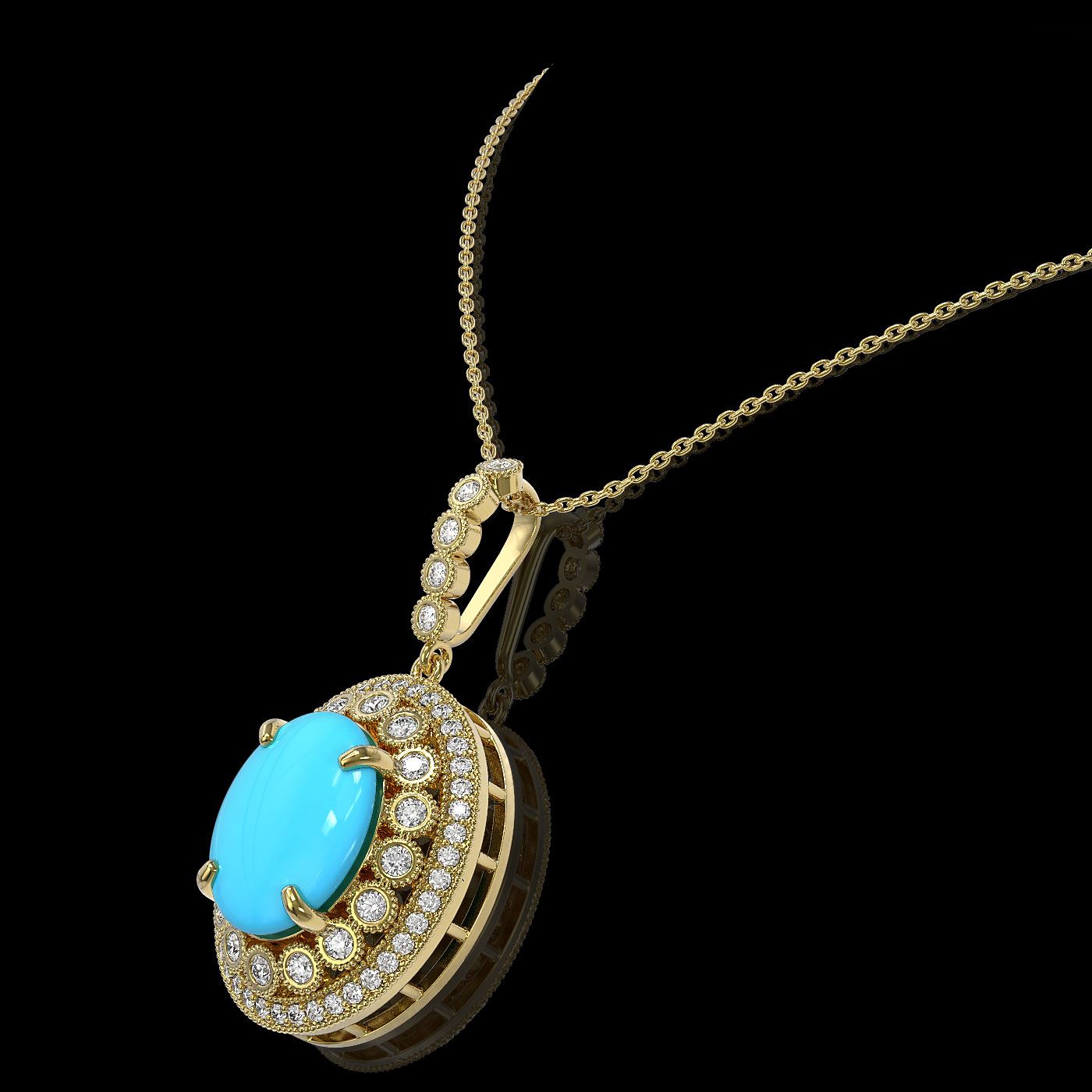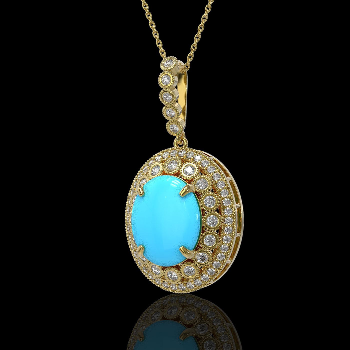 SKU: 46136 ---- 8.97 ctw Turquoise & Diamond Victorian Necklace 14K Yellow Gold
