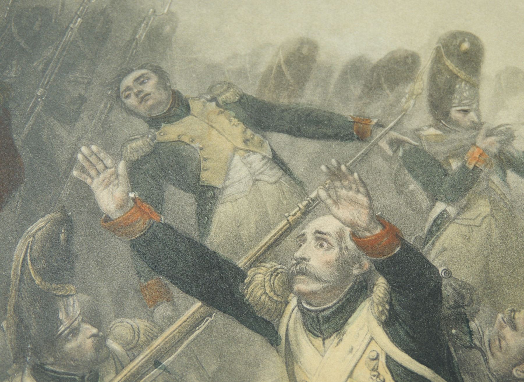 17X12 INCHES SIZE PRINT / LITHOGRAPH HIGH QUALITY DEPICTING NAPOLEON AT WATERLOO INCLUDES PROTECTIVE CARD FOR DISPLAY/TRANSPORT