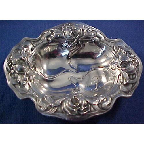 <tr><td><font size="2" face="Arial, Helvetica, sans-serif"><strong><font color="#000033">Title:</font></strong>8 ART NOUVEAU Sterling NUT OR MINT DISHES</font></td></tr>