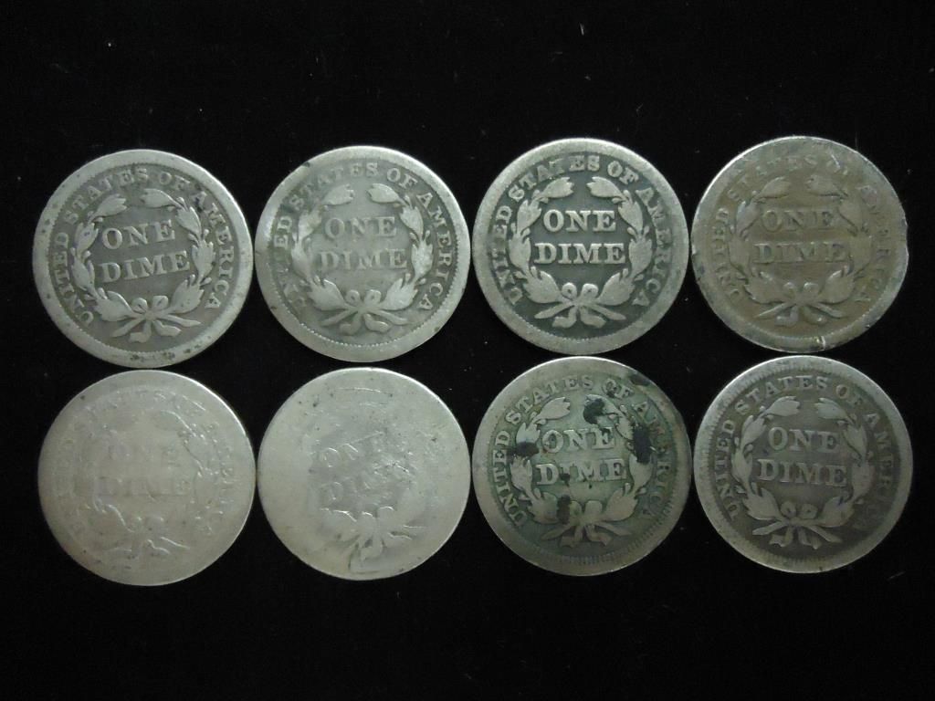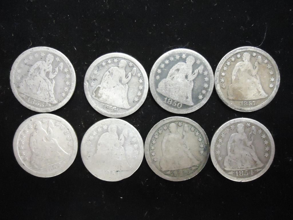 8 ASSORTED 1850'S SEATED LIBERTY DIMES