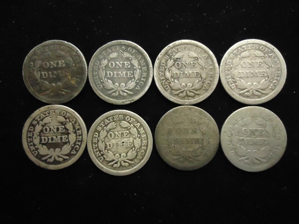8 ASSORTED 1850'S SEATED LIBERTY DIMES