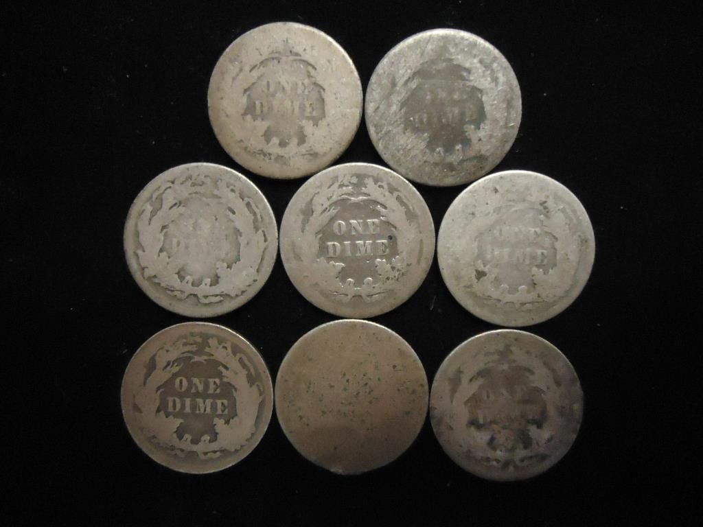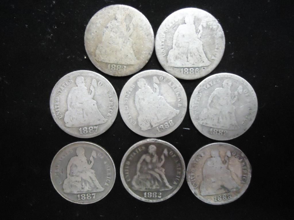 8 ASSORTED 1880'S  SEATED LIBERTY DIMES