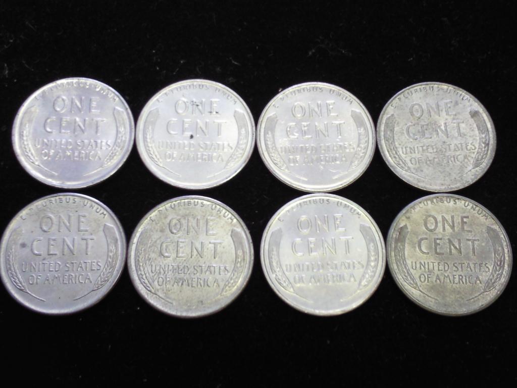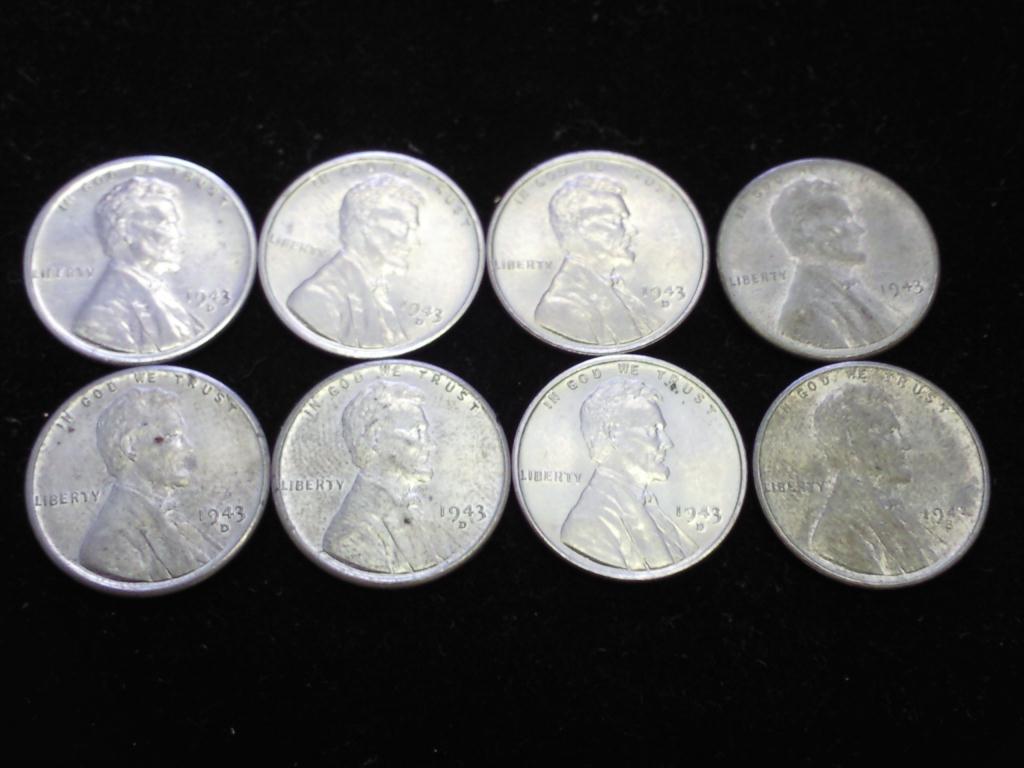 8 ASSORTED 1943 LINCOLN STEEL CENTS (EF-UNC)