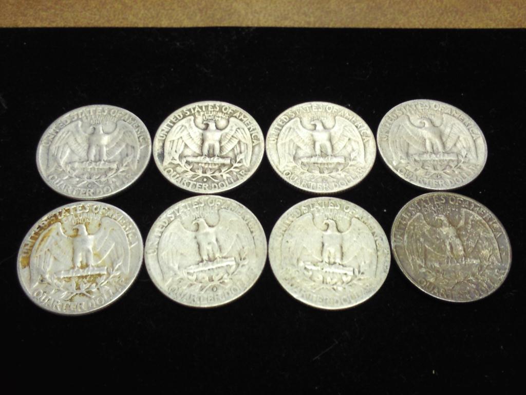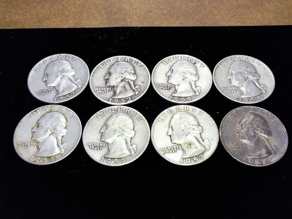8 ASSORTED 1950'S WASHINGTON SILVER QUARTERS