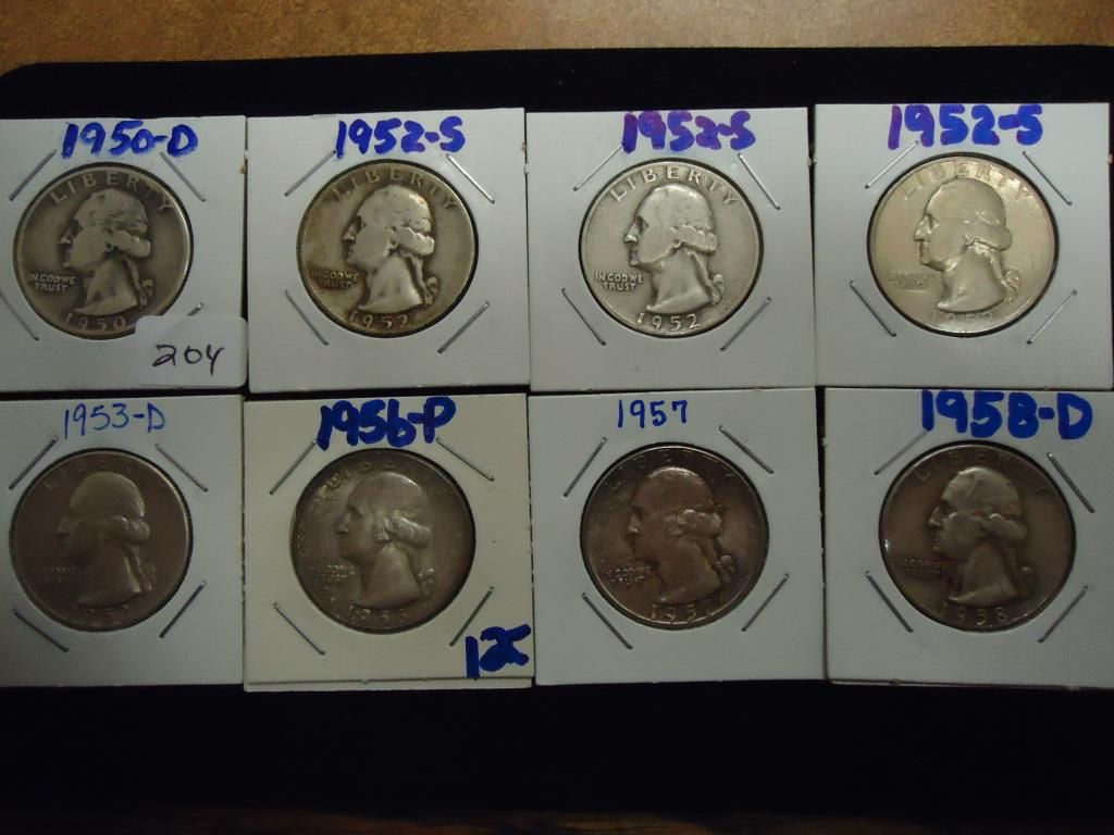 8 ASSORTED 1950'S WASHINGTON SILVER QUARTERS