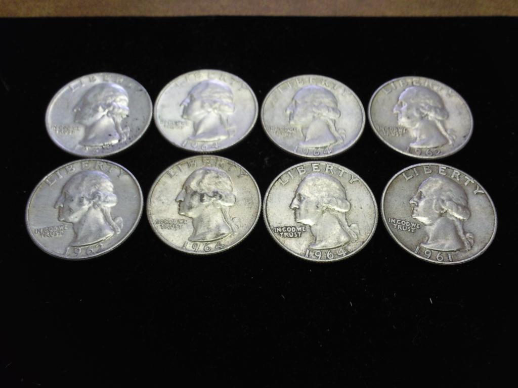 8 ASSORTED 1960'S WASHINGTON SILVER QUARTERS