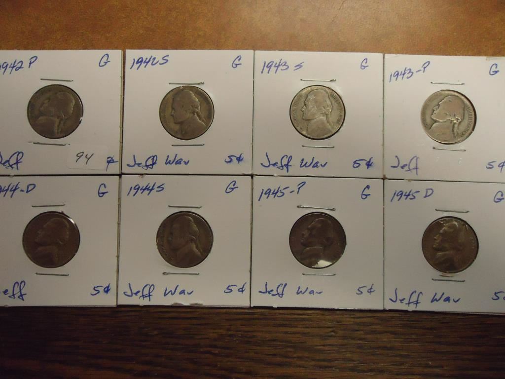 8 ASSORTED 35% SILVER JEFFERSON WAR NICKELS