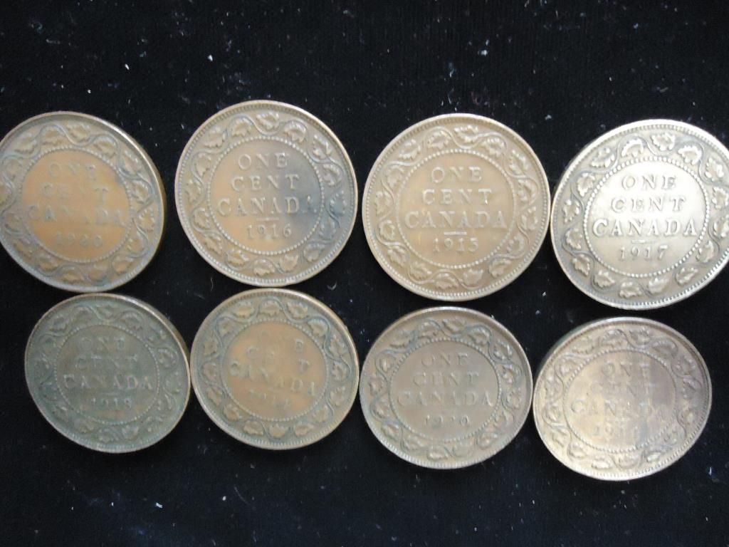 8 ASSORTED CANADA LARGE CENTS 1914-1920