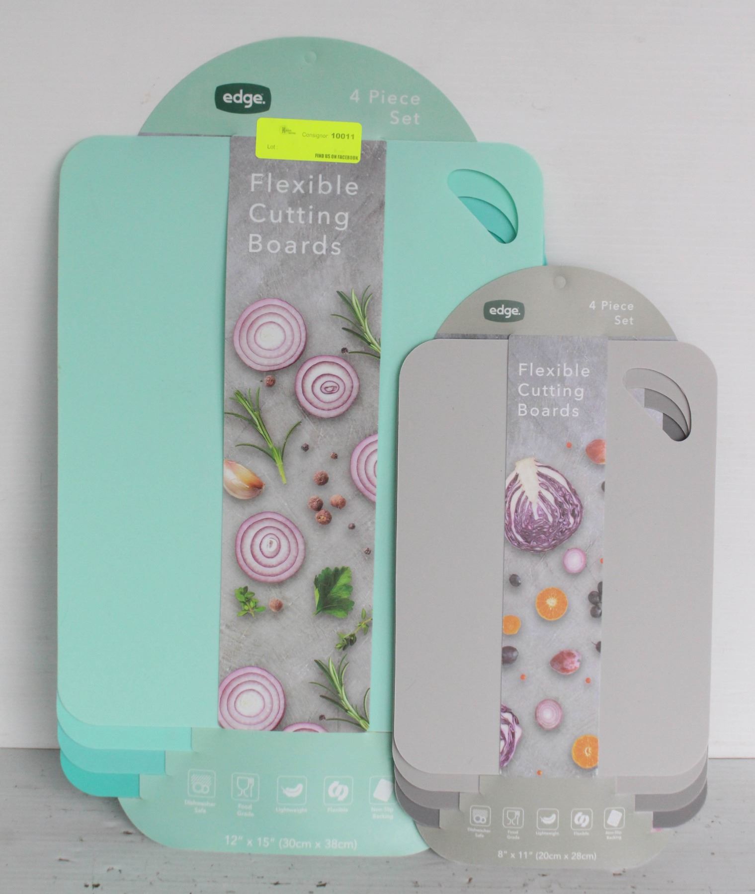 2 DIFFERENT SIZES AND VARIOUS SHADES OF 2 COLOURS: FOUR 15" X 12", FOUR 11" X 8". NON-SLIP, LIGHTWEIGHT AND SEMI-REIGID FLEXIBILITY, NON-SLIP BACKING. SHADES OF TEAL AND GREY.
