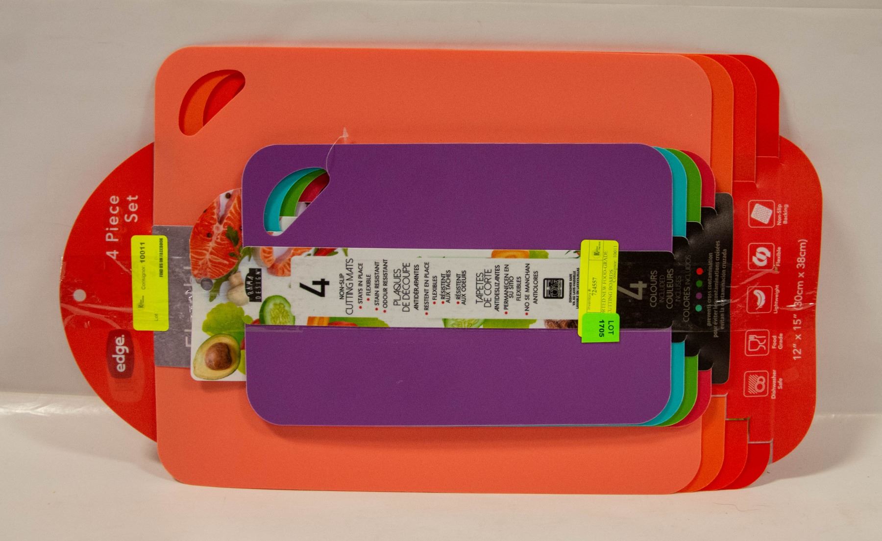 2 DIFFERENT SIZES AND VARIOUS SHADES OF 2 COLOURS: FOUR 15" X 12", FOUR 11" X 8". NON-SLIP, LIGHTWEIGHT AND SEMI-REIGID FLEXIBILITY, NON-SLIP BACKING. SHADES OF SALMON AND MULTI-COLOUR(PURPLE RED BLUE AND GREEN).