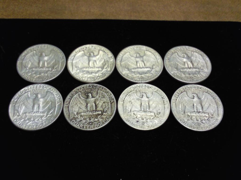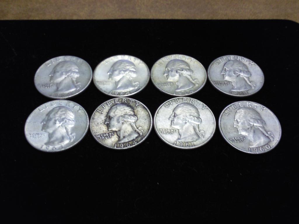 8 ASSORTED WASHINGTON SILVER QUARTERS $2 FACE VAL.