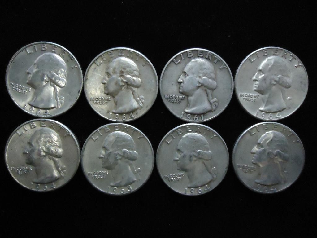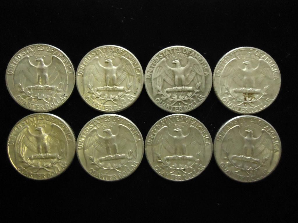 8 ASSORTED WASHINGTON SILVER QUARTERS