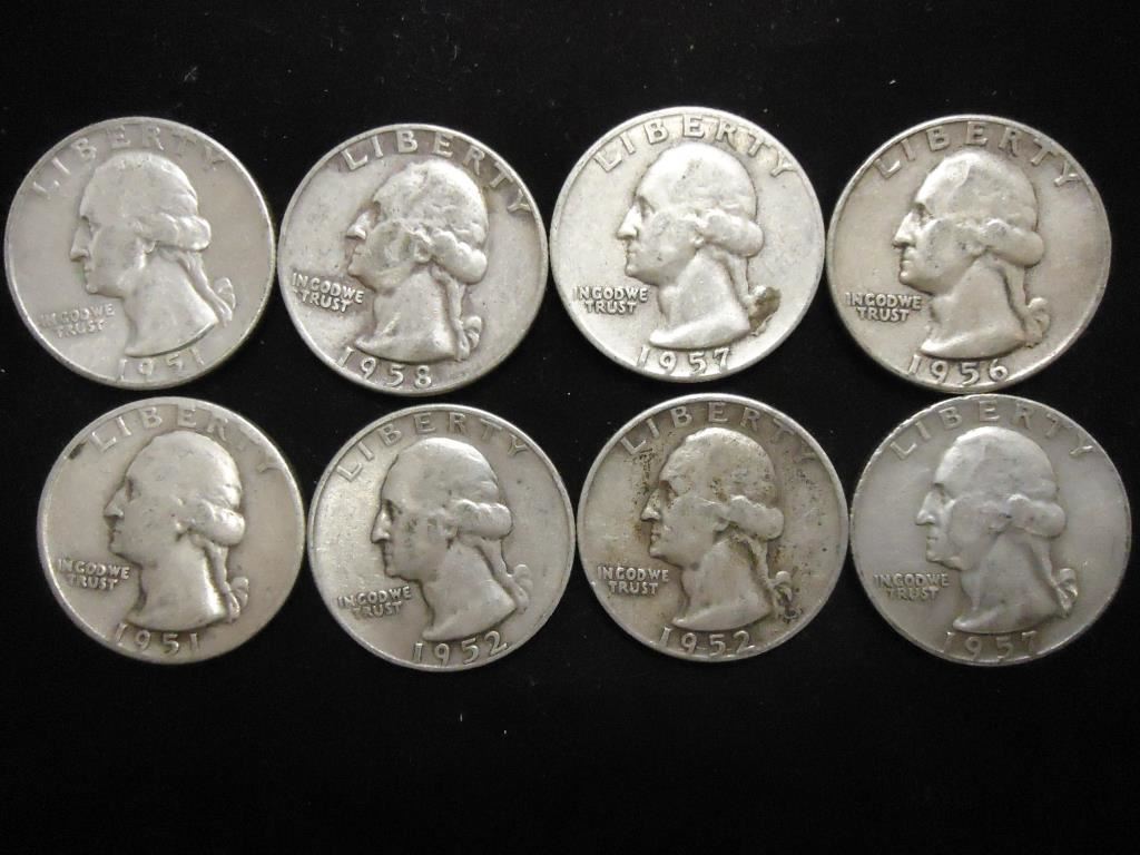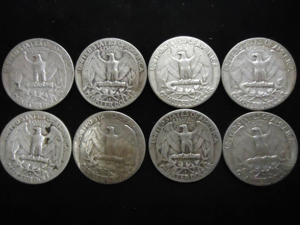 8 ASSORTED WASHINGTON SILVER QUARTERS
