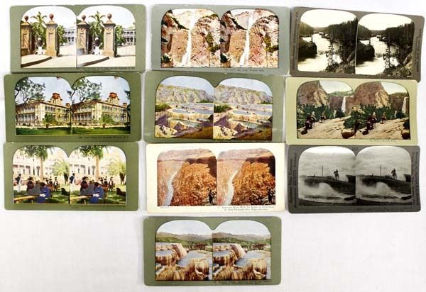 8 Antique Stereoscope Cards, includes 8 cards featuring various photos of National Parks on the mainland and in Hawaii