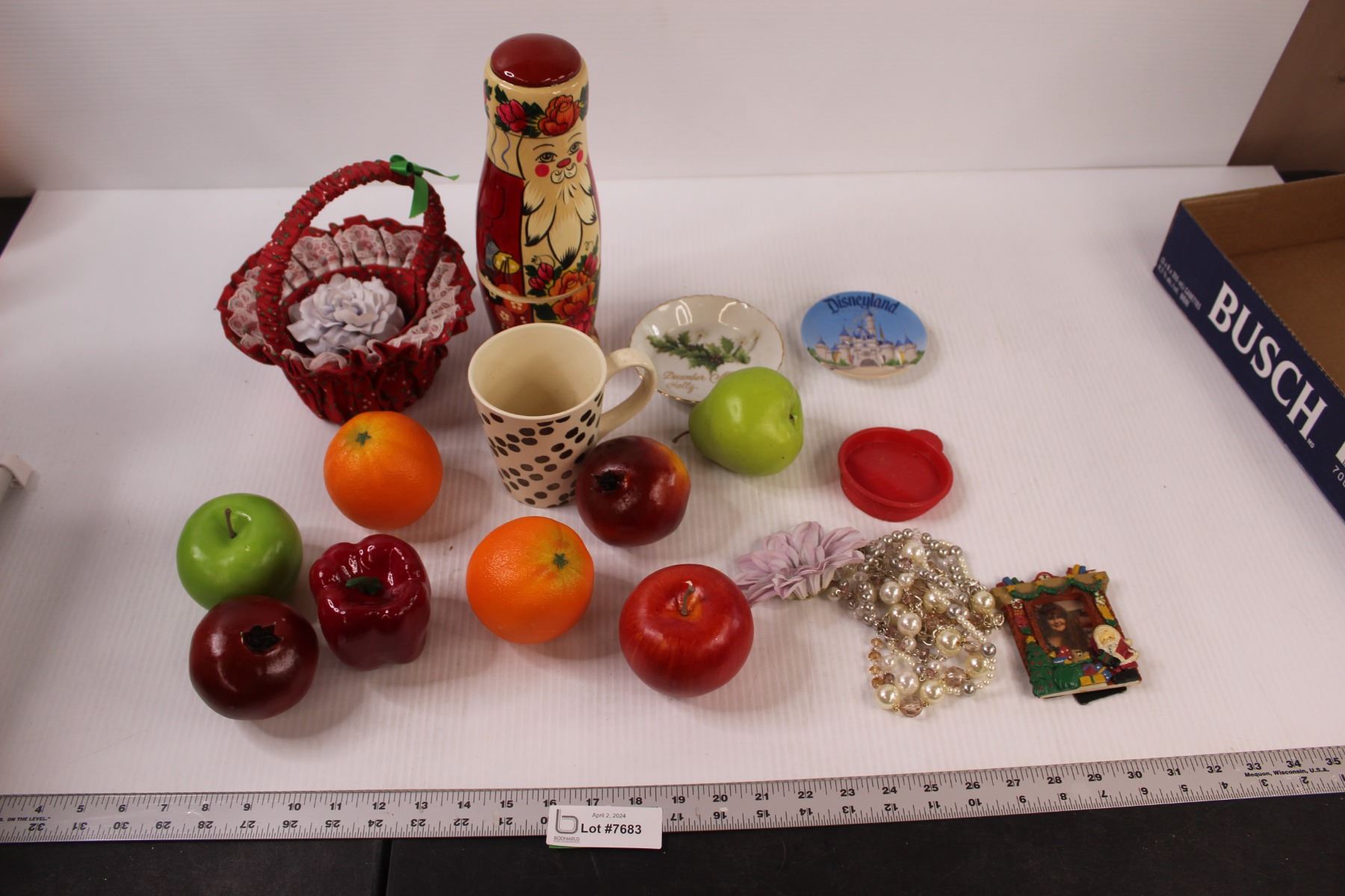 (8) Artificial Fruits, Nesting Doll (Nothing inside), Misc.