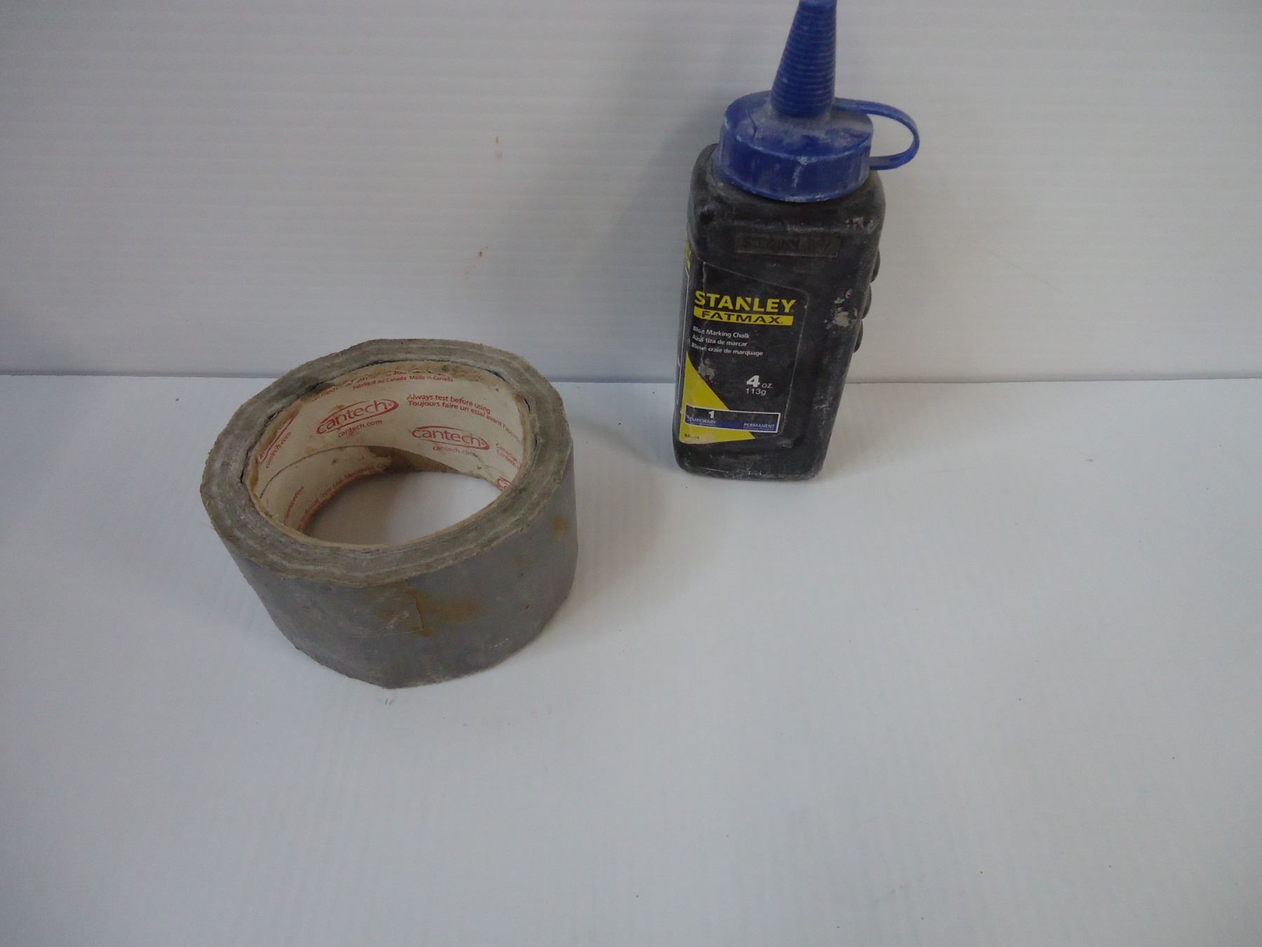 (8) Assorted Tools, Roll of Duct Tape, Blue Marking Chalk