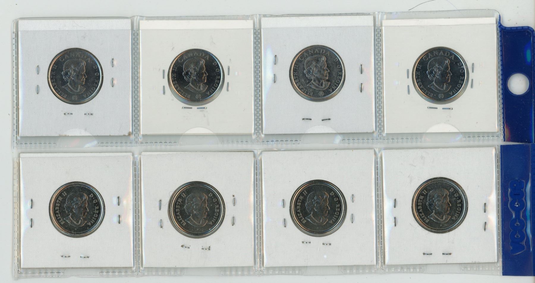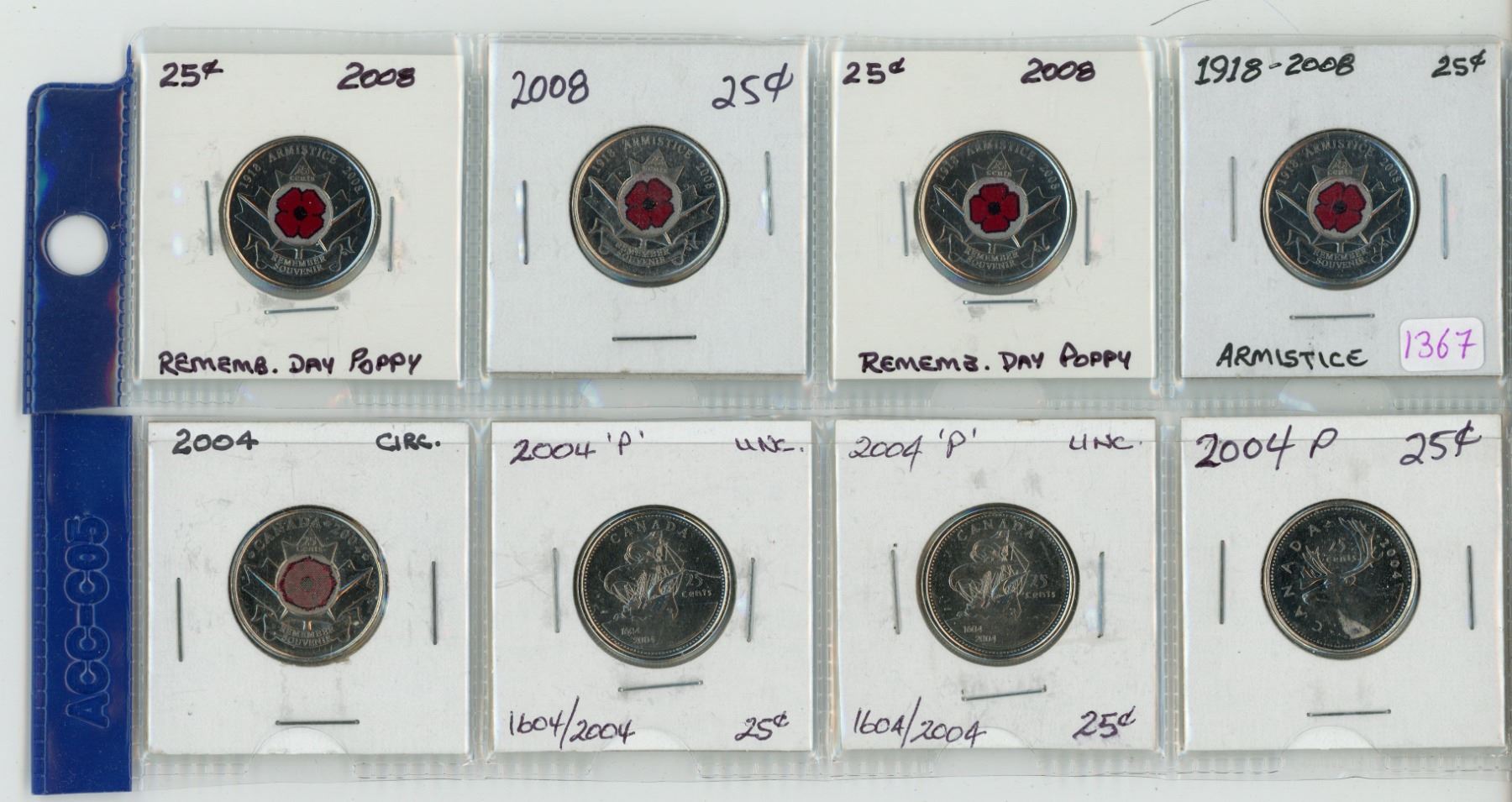 8 - Asst Canadian 25 cent coins - 2004 & 2008