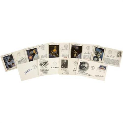<B>Astronaut Signed Postal Covers,</B></I> eight, including Allen Bean; Jerry Carr (2); Owen Garriott (2); John Glenn; Frank Borman; Harrison Schmitt. Included in this lot is a cover with a stamped signature of Alan Shepard. All are 6.5" x 3.5" and in near fine condition. <BR><BR><BR><b>Shipping:</b> Flat Material, Small (<a target="_blank" href="http://www.heritageauctions.com/common/shipping.php">view shipping information</a>)