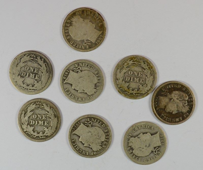 (8) BARBER DIMES (07, 08, 10, 11, 12, 14, 14-D, 16)