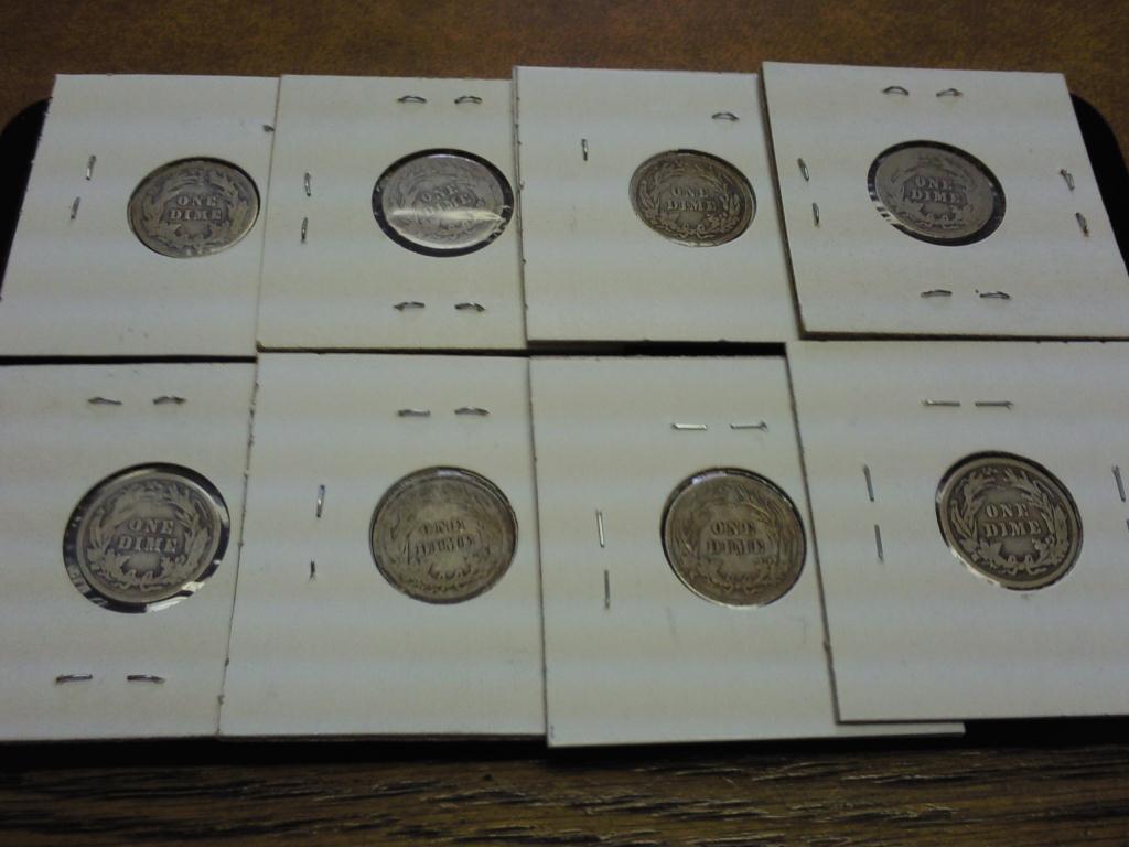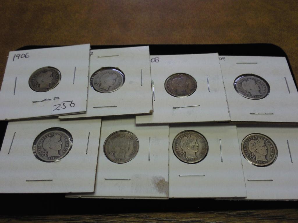 8 BARBER DIMES 1906, 07, 08, 09, 10, 11, 12 & 14