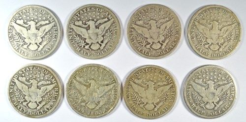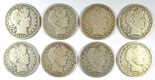 8 BARBER HALF DOLLARS (08-O,08-S,09,09-O,09-S,10,10-S,11) G-VG