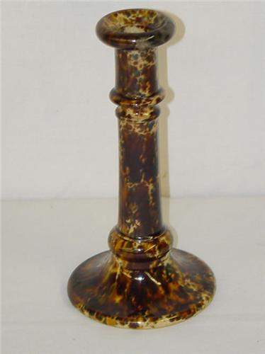 8" BENNINGTON CANDLESTICK W/ FLINT ENAMEL GLAZE REPAIR - IMPERFECTIONS