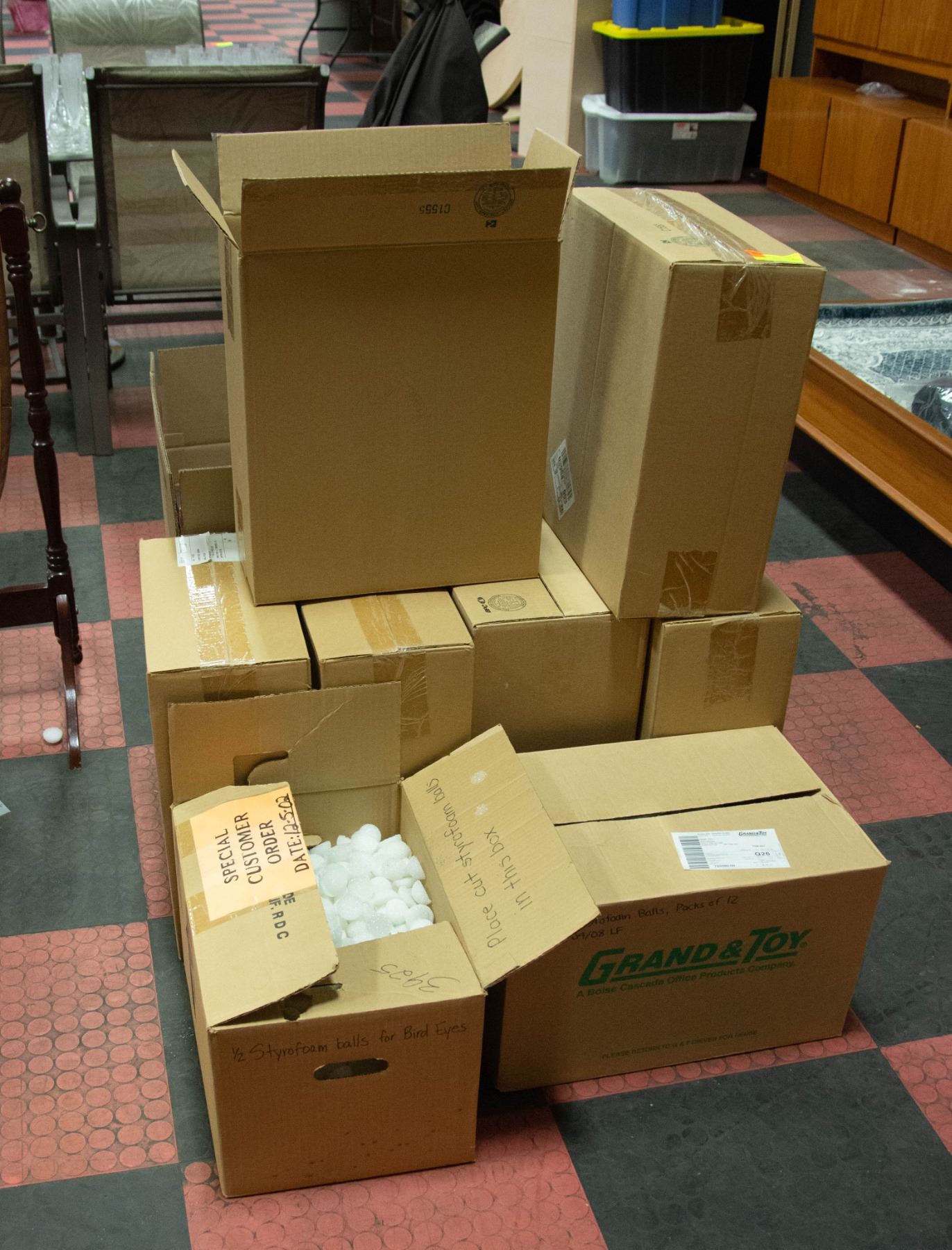 8 BOXES OF STYROFOAM BALLS - VARIOUS TYPES, SIZES