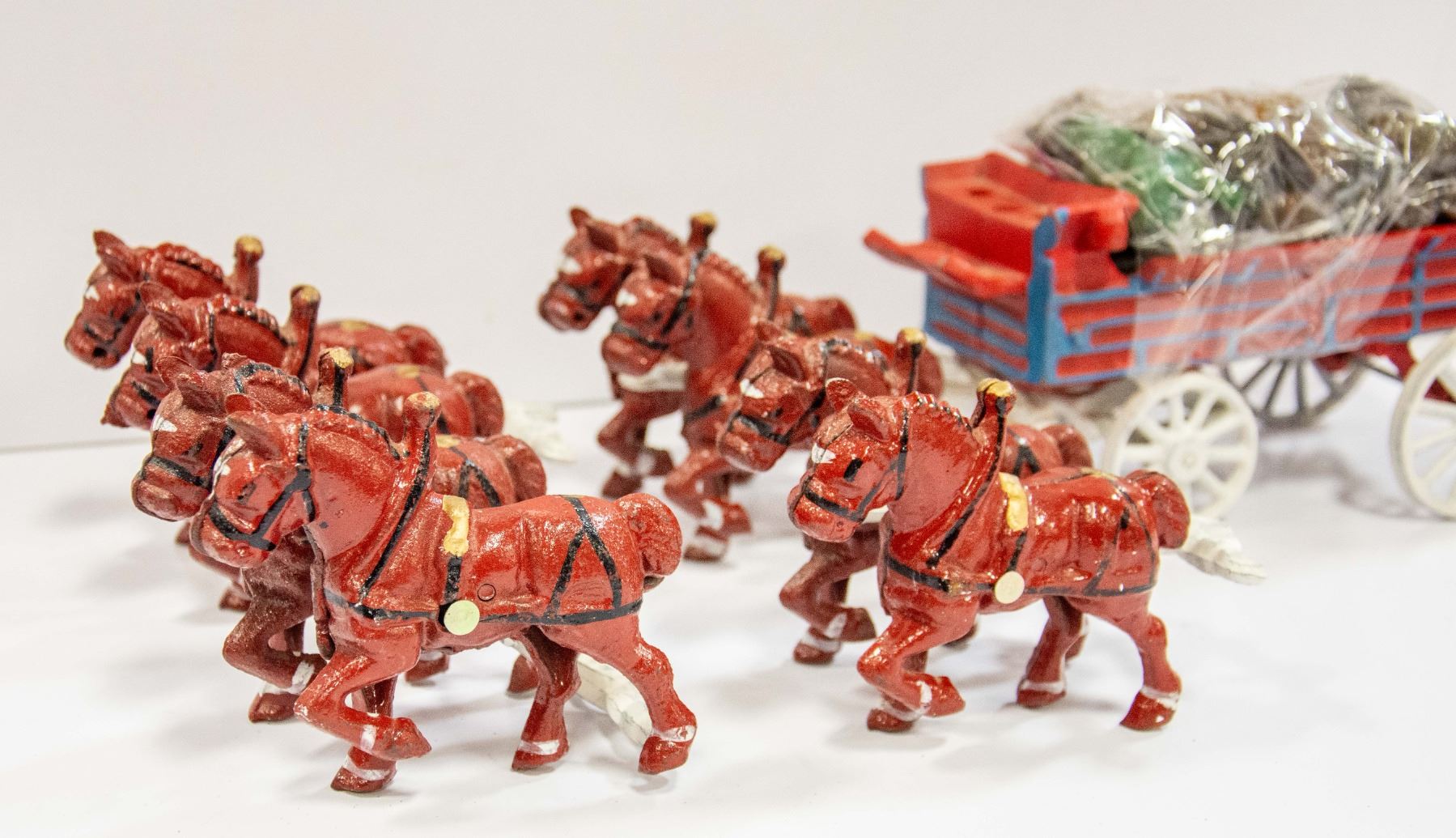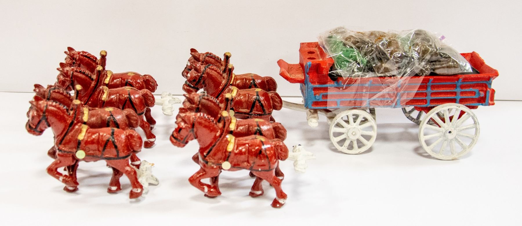 8 BUDWEISER CAST IRON HORSES & BEER WAGON