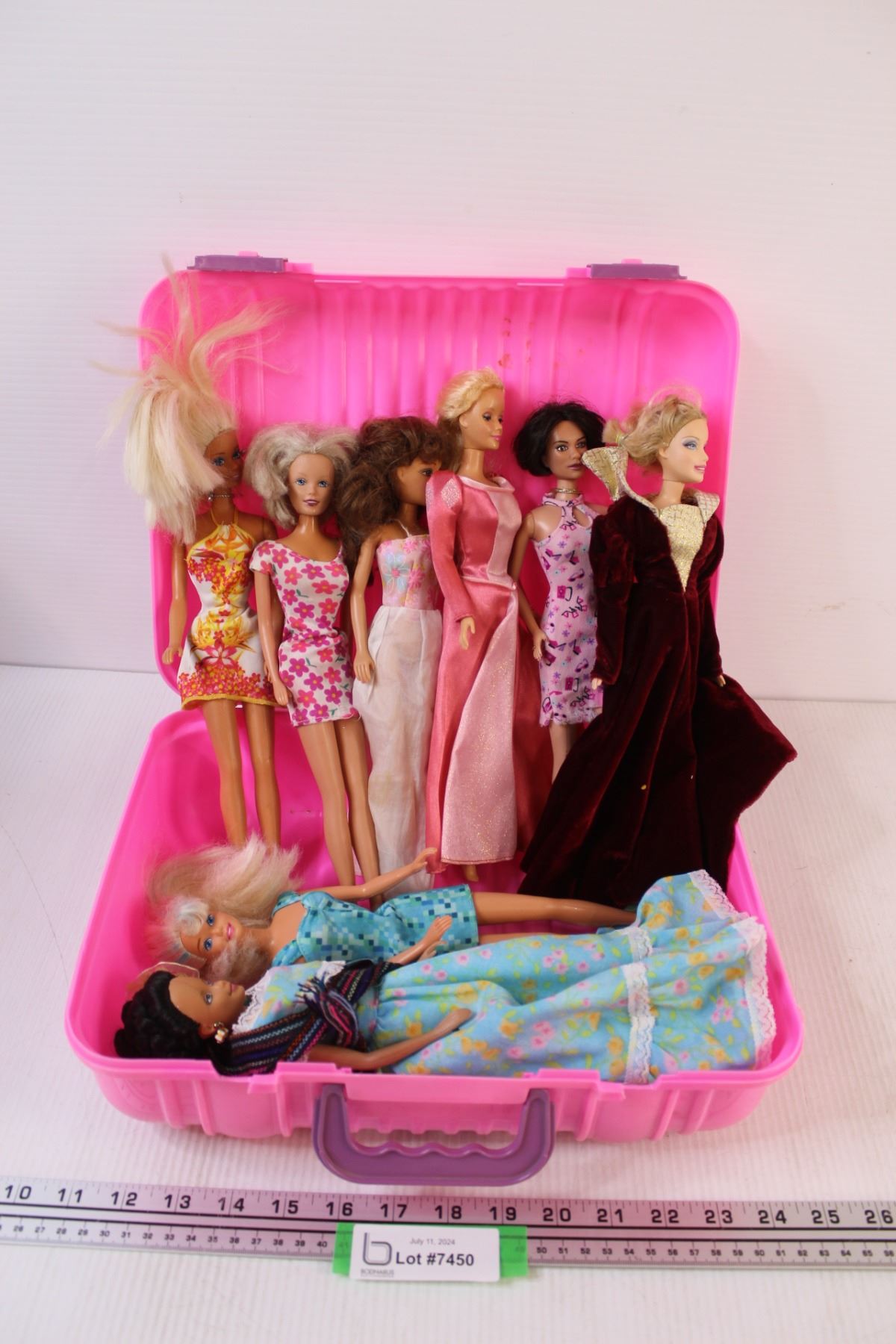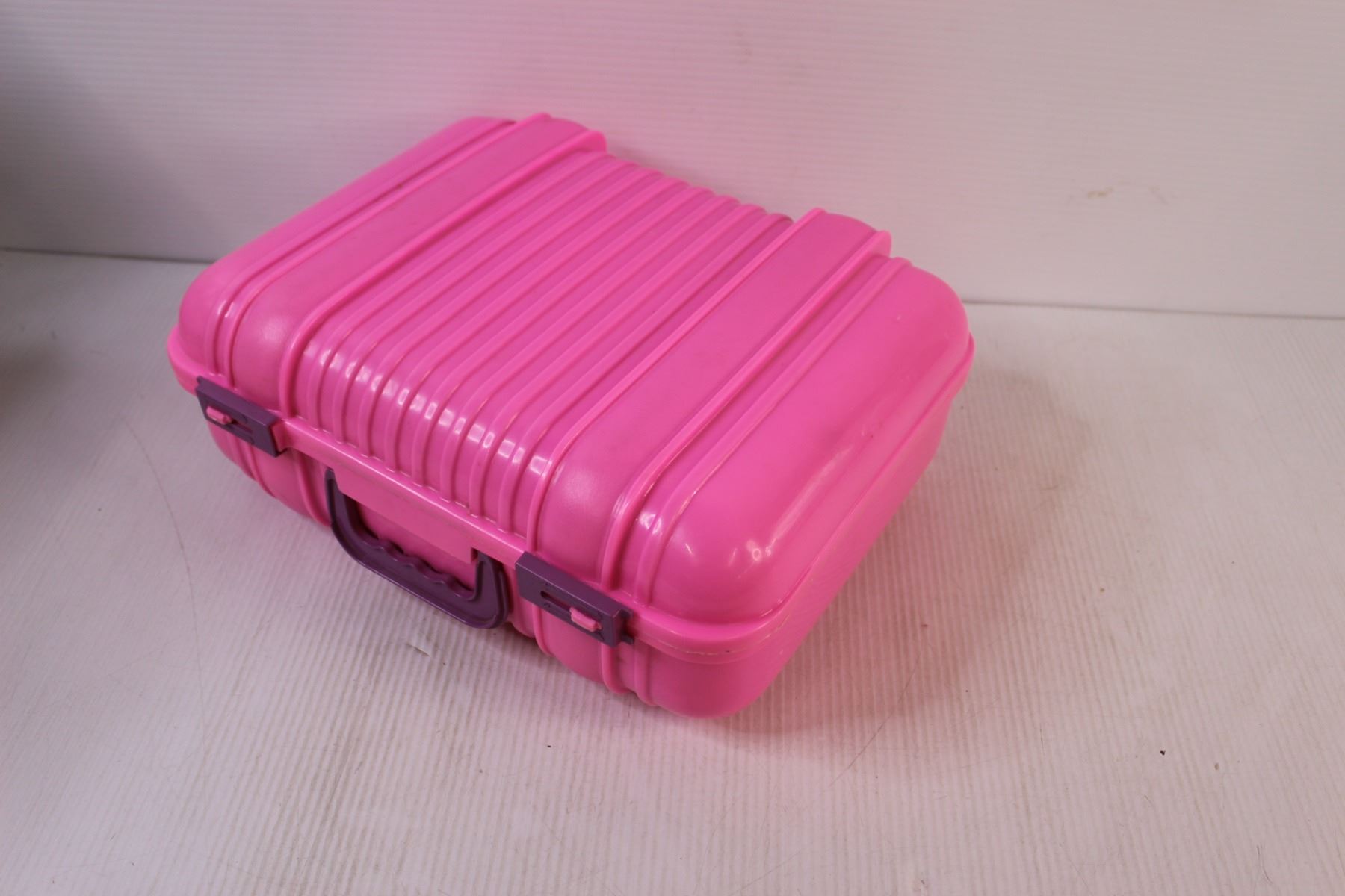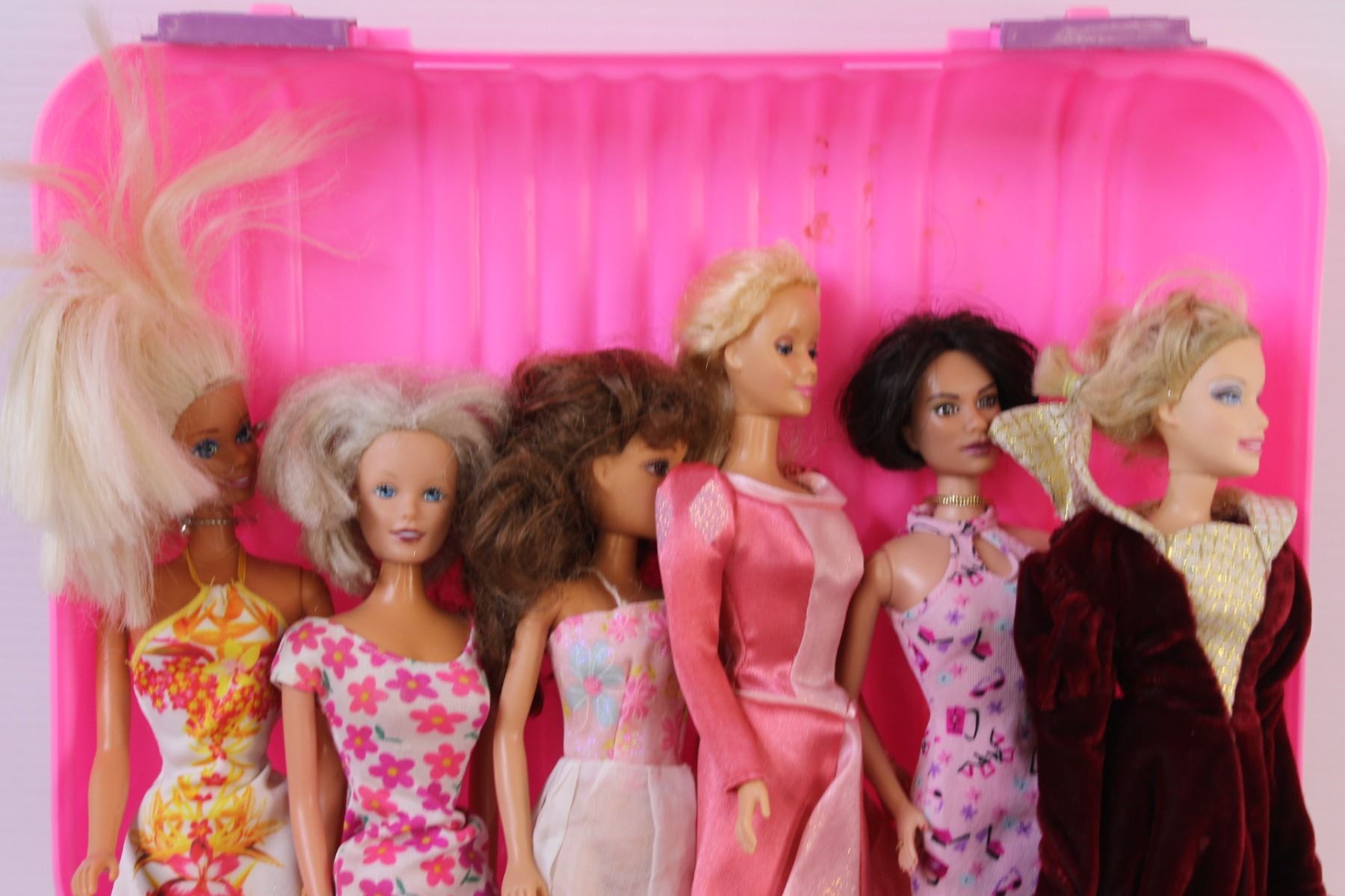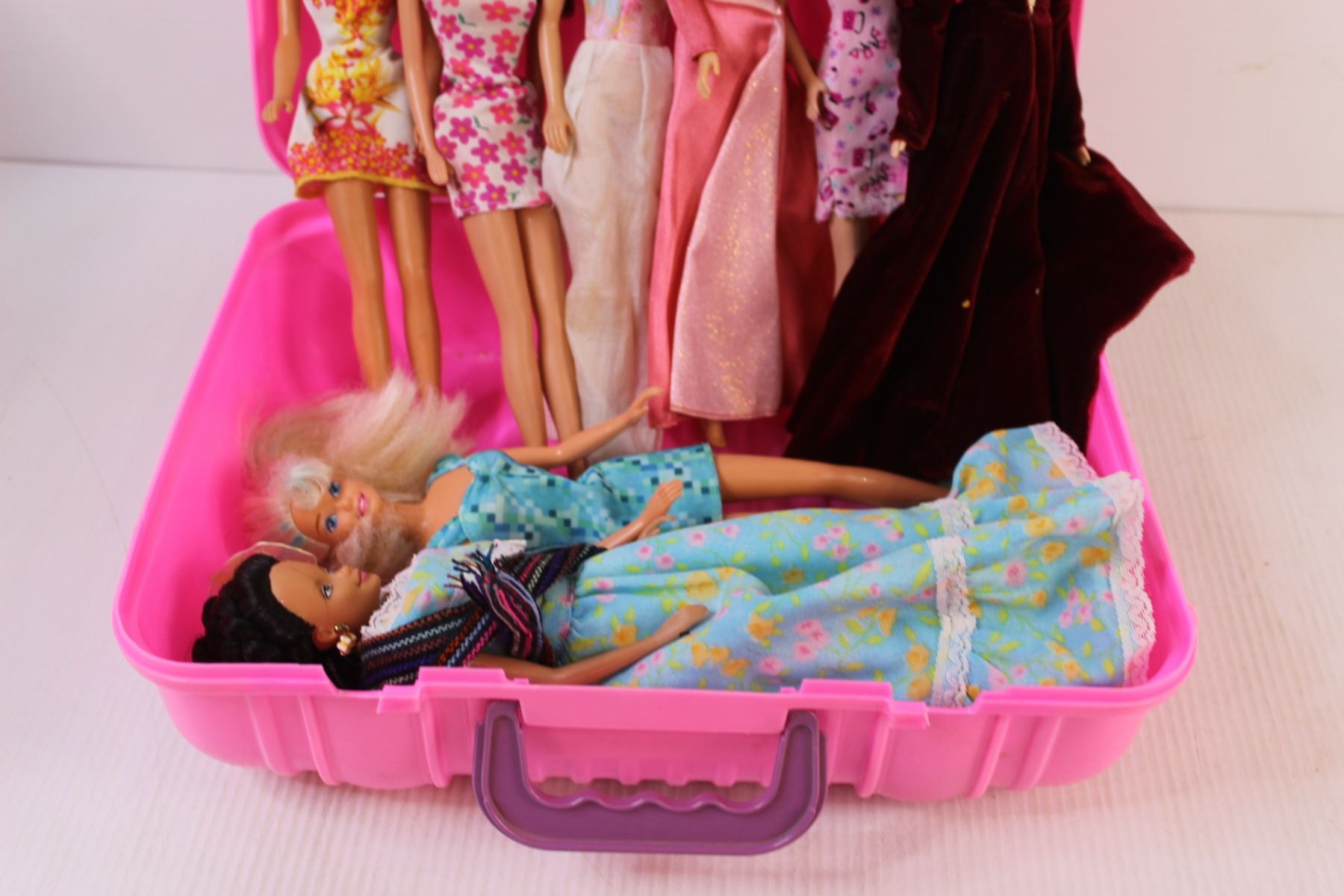 (8) Barbies in Pink Plastic Suitcase