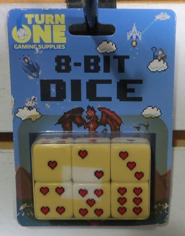 8-Bit D6 Dice: Hearts Package is yellowed dice are not