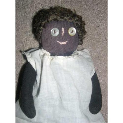<tr><td><font size="2" face="Arial, Helvetica, sans-serif"><strong><font color="#000033">Title:</font></strong>8" Black Cloth Doll with Button Eyes</font></td></tr>