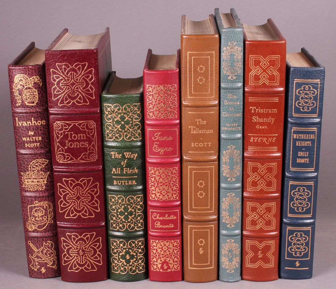 [Easton Press/British Authors]. 8 Titles. ++ Henry Fielding. THE HISTORY OF TOM JONES: A Foundling. (1979). ++ Charlotte Bronte. JANE EYRE. (1978). ++ Emily Bronte. WUTHERING HEIGHTS. (1980). ++ Samuel Butler. THE WAY OF ALL FLESH. (1980). ++ Oliver Goldsmith. SHE STOOPS TO CONQUER. (1978). ++ Laurence Sterne. THE LIFE & OPINIONS OF TRISTRAM SHANDY Gentleman. (1980). ++ Walter Scott. IVANHOE. (1977).++ Scott. THE TALISMAN. (1976). ++