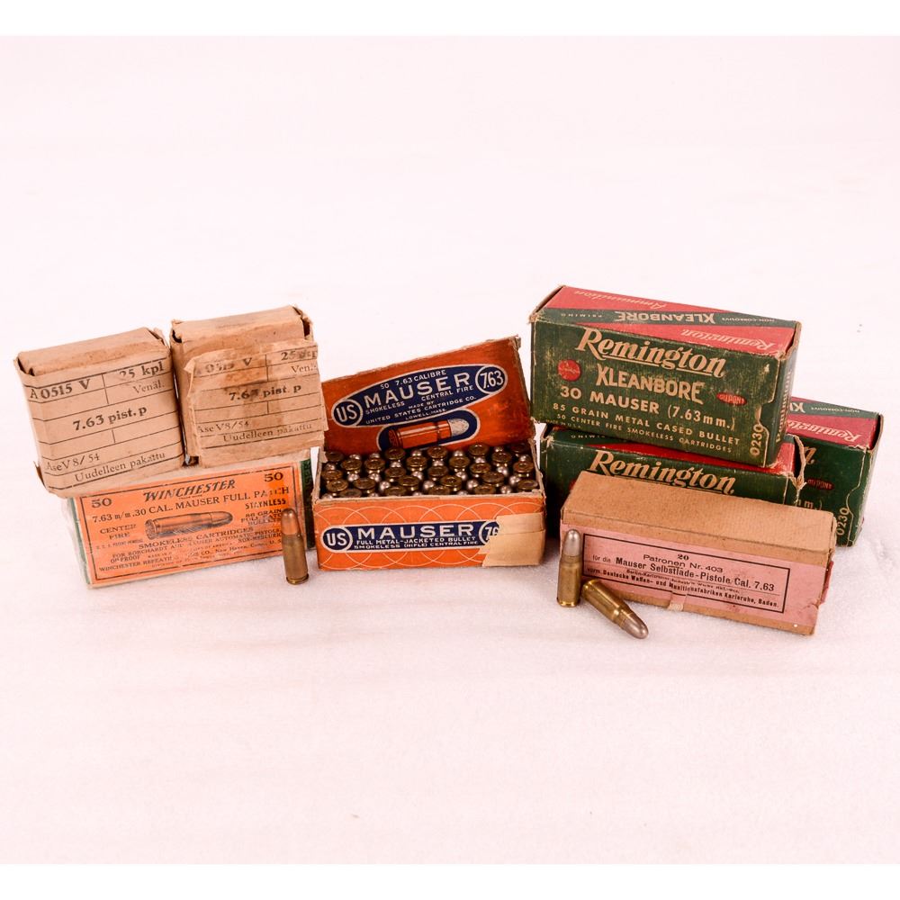 Includes 3 boxes of Remington kleanbore, a box of Winchester, a box of United States Cartridge Co, 2 boxes of Finnish , and a box of German Ammo. 2 boxes are missing a couple of rounds.