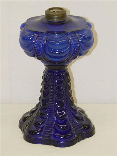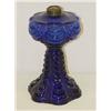 8" COBALT PATTERN GLASS FLUID LAMP-DRAPE PATTERN - BASE CHIPS