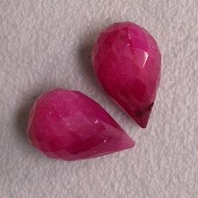 2 FACETED RUBY BRIOLETTE. WEIGHING 8 CTS AND MEASURING 10X6 MM (COLOR EACH INCLUDED) TOP DRILLED