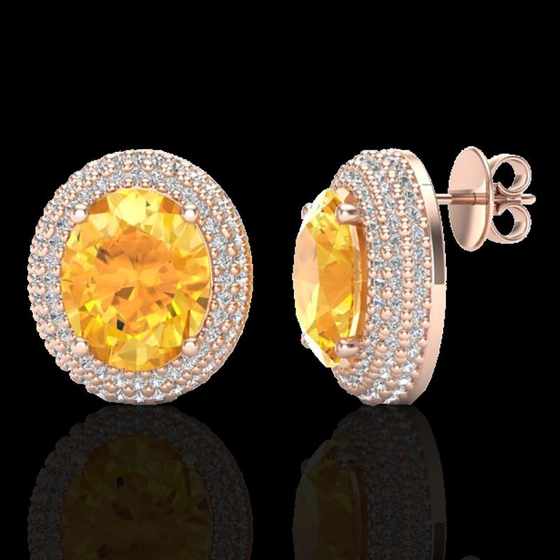 REF-142A9X -20220 ---- 8 CTW Citrine & Micro Pave VS/SI Diamond Earrings 14K Rose Gold ---- Luxury Designer Brand Earring Appraised at $10,200 Certificate Number US20220 14k Rose gold, Earring Size is 5/8 Inches, Earring measuring approx. 5/8 X 1/2", weighing in total approx. 4.5 grams. Made in the USA and is stamped 14k, Main stone 6.5 carat total weight containing 2 pieces of Translucent Yellow color with AAA quality Oval shape cut Citrine , Stone #2 1.5 carat total weight containing 204 pieces of H-I color with VS/SI quality Round shape cut Diamond