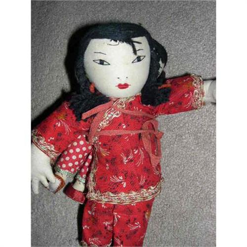 8" China Cloth Doll With Baby. Some stain.