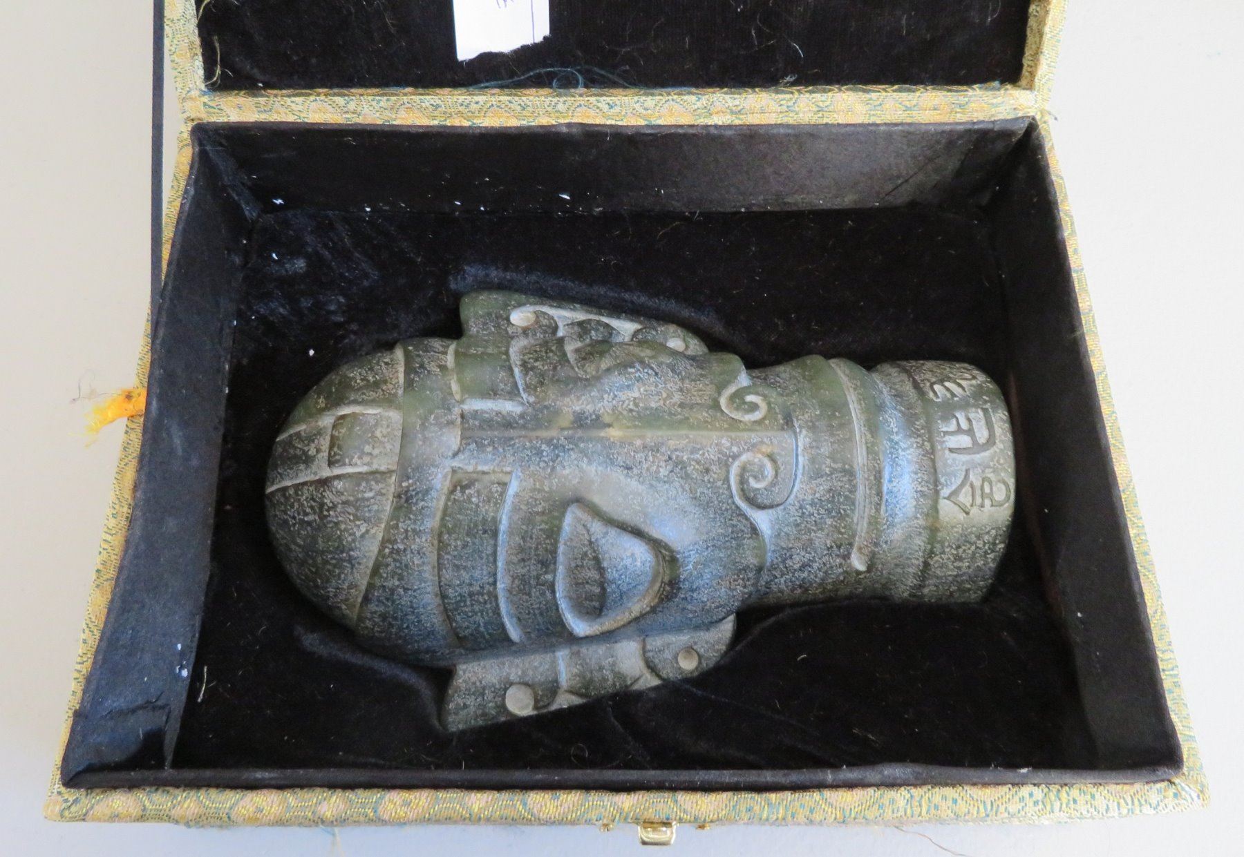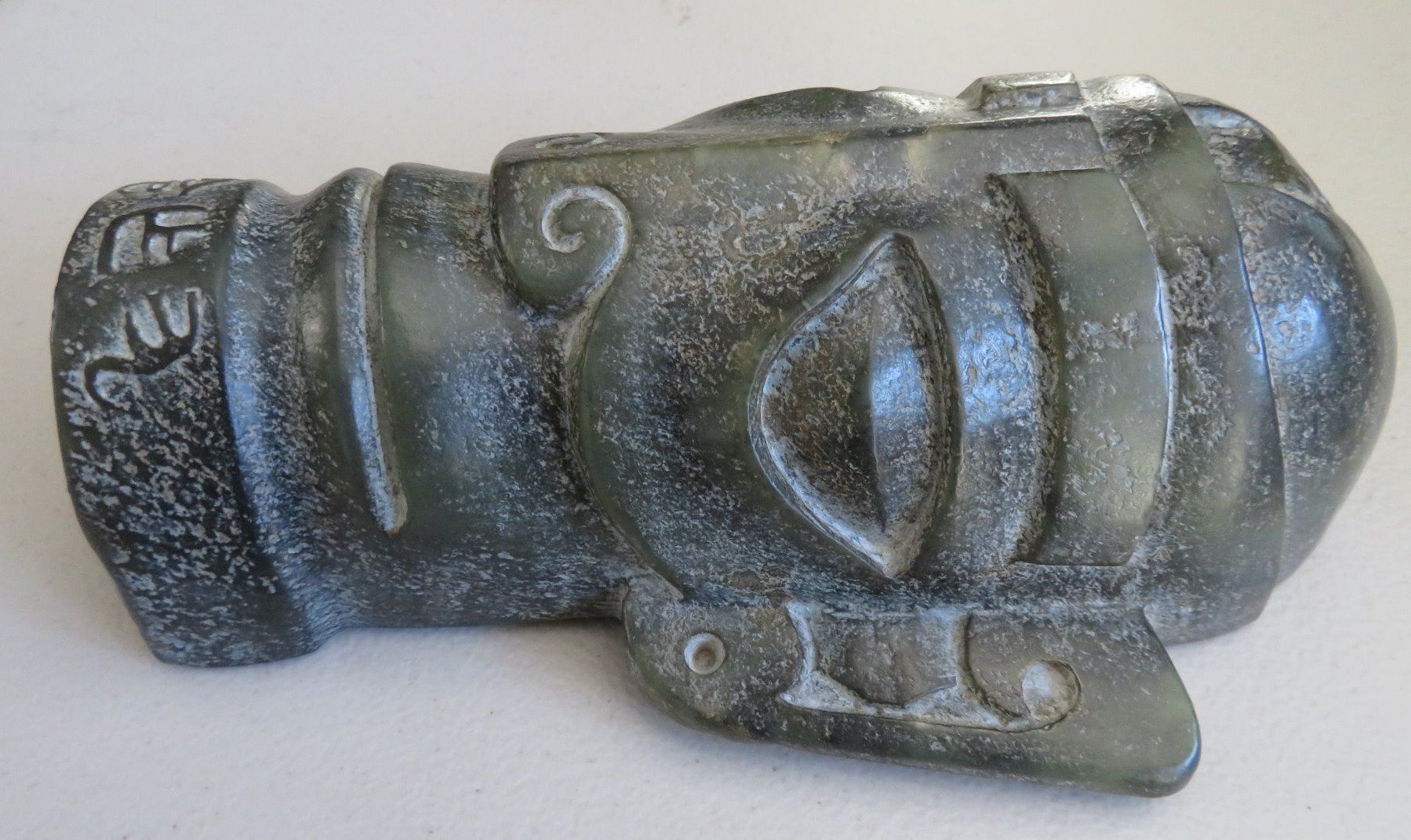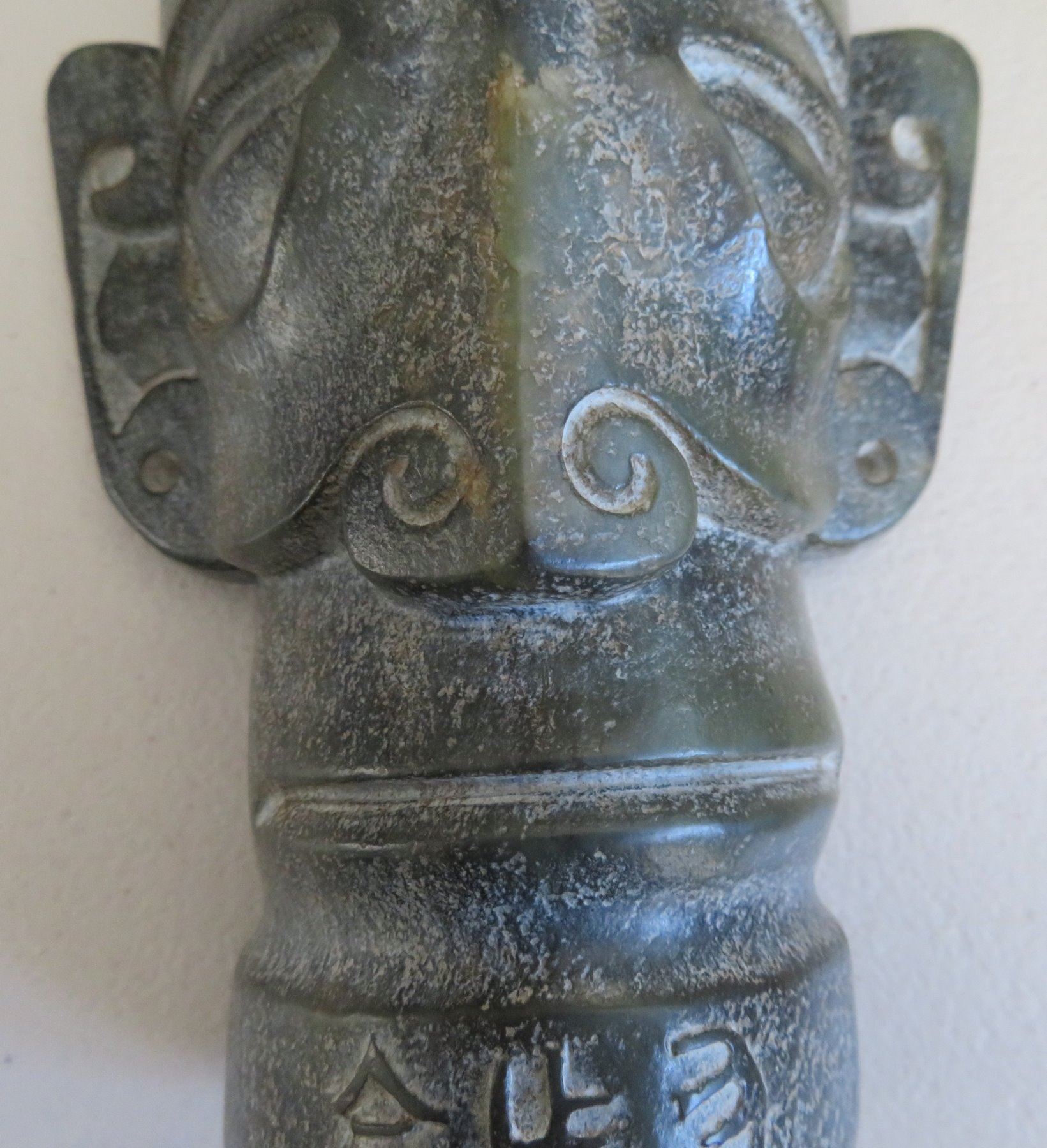 8" Chinese Jade Head, Warring States period. Made of jade, the item measures 8" x 5" x 3". 3 Gorges region, China. Ex-Heritage of the Americas Museum. Condition: Good, see images. Shipping: $40.00 w/insurance and signature, double-boxed, due to value.