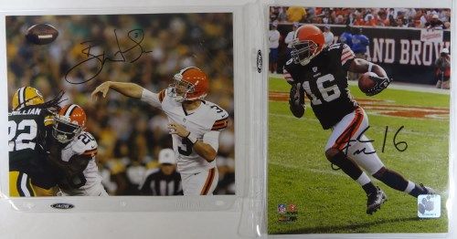 Dion Lewis, 2 - Trent Richardson, Josh Gordon, Brandon Weeden, Barkevious Mingo, Peyton Hillis, Josh Cribbs. No COA. Est. Value $125.00 - $150.00.