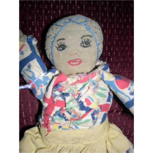 8" Cloth Mammy with Stitched Features.She is homemade and Mom embroidered the features. I'm saying she is a black Mammy doll but you be the judge. She has soil to the cloth. I'm not sure the original color of the cloth but as you can see the material covered by the dress is about the same as the face just face has some soil. I see a small opening in the toe of one foot. She is cotton stuffed. If you can love her, please bid. Doll comes from a smoke free environment. Buyer to pay $8 for shipping, handling, and insurance. Thanks for viewing.