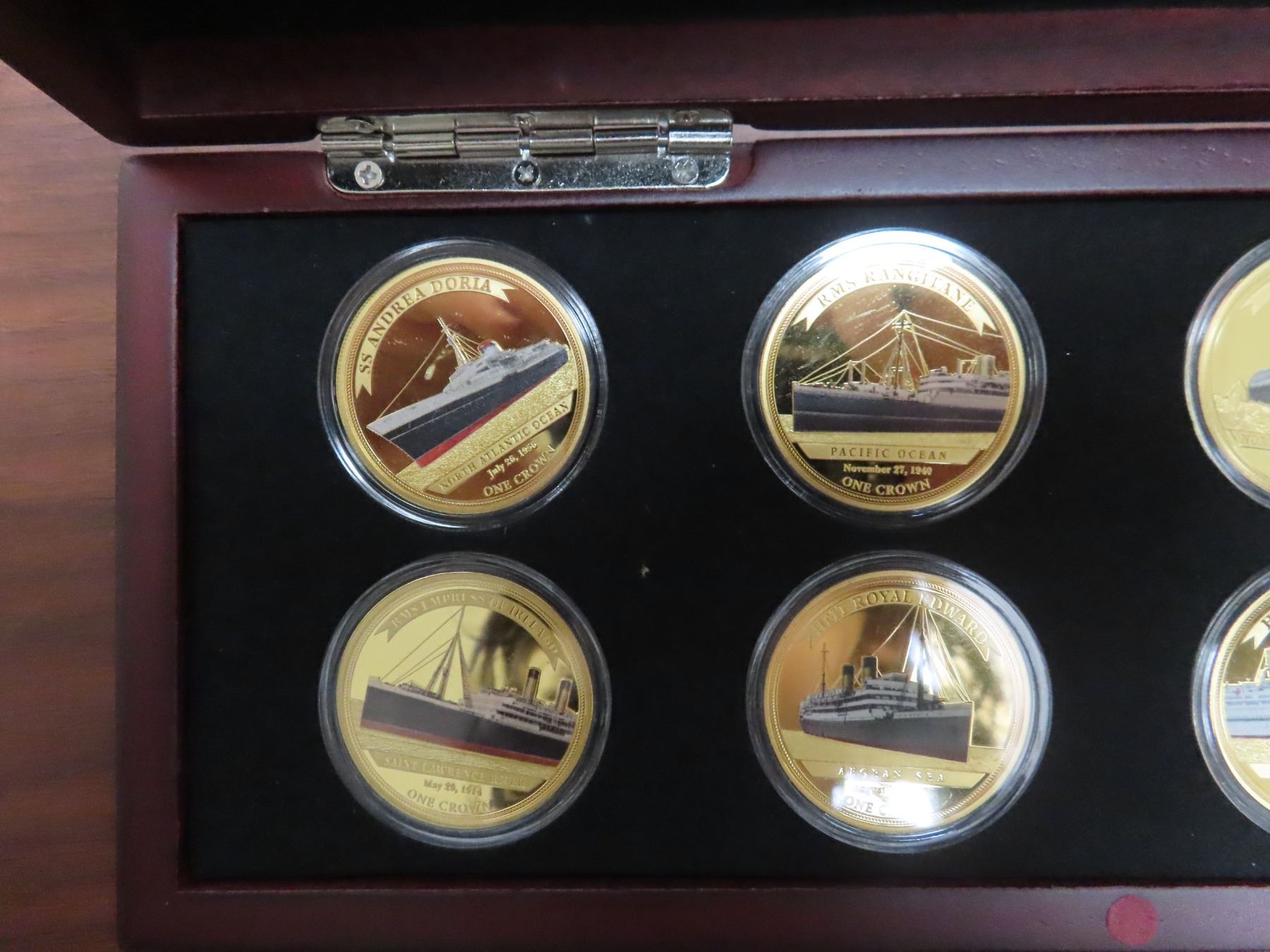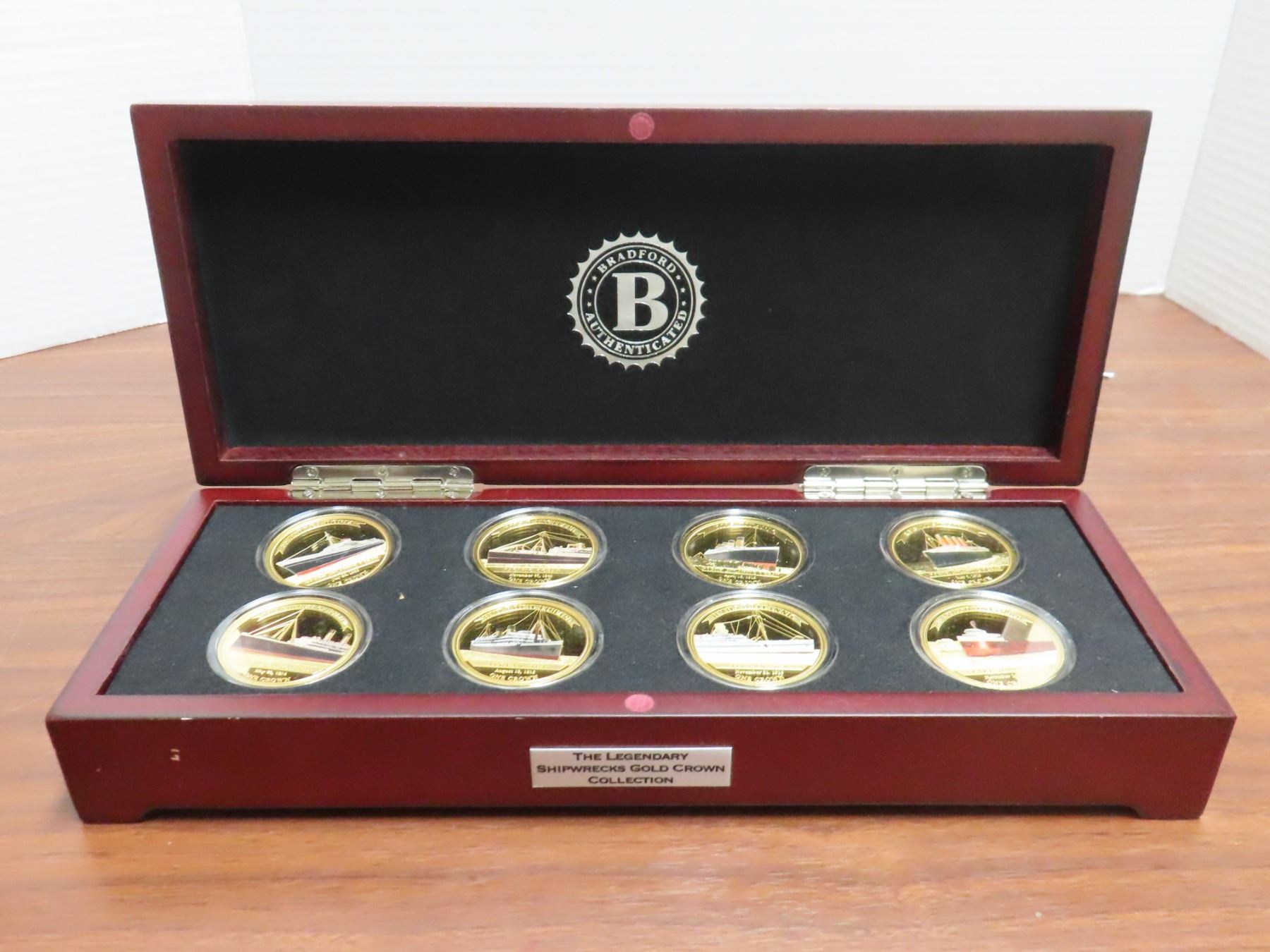 8 Coin Set of Legendary Shipwrecks, Gold Crown Collection, in Red Wooden Box - Made by Bradford Exchange