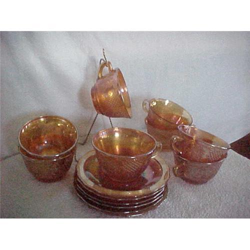 Carnival glass, Normandy, (8) cups; (6) saucers