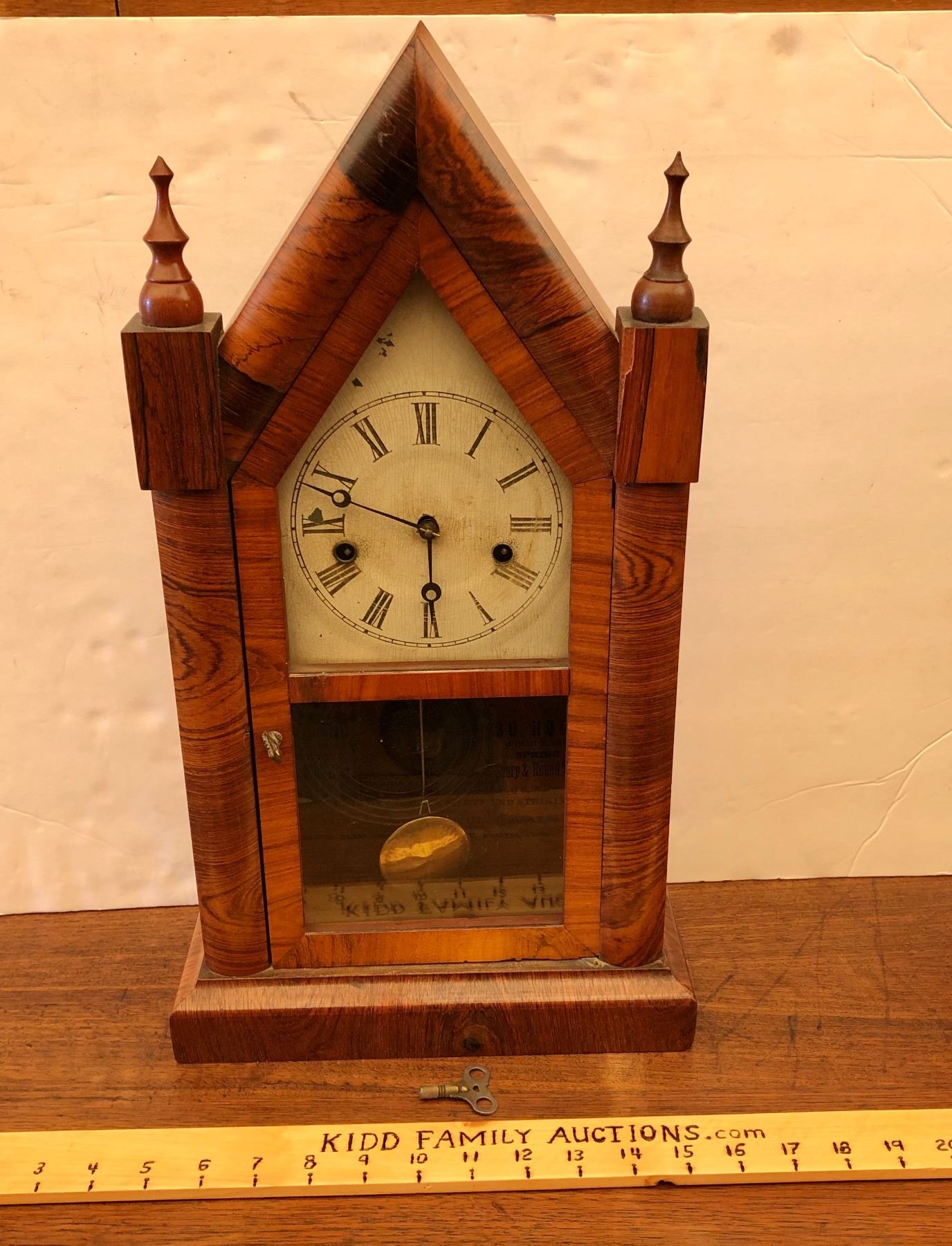 8 DAY 30 HOUR ANTIQUE MANTLE CLOCK W/ KEY