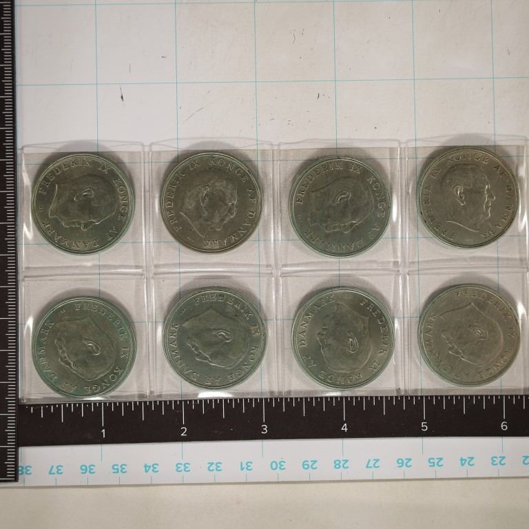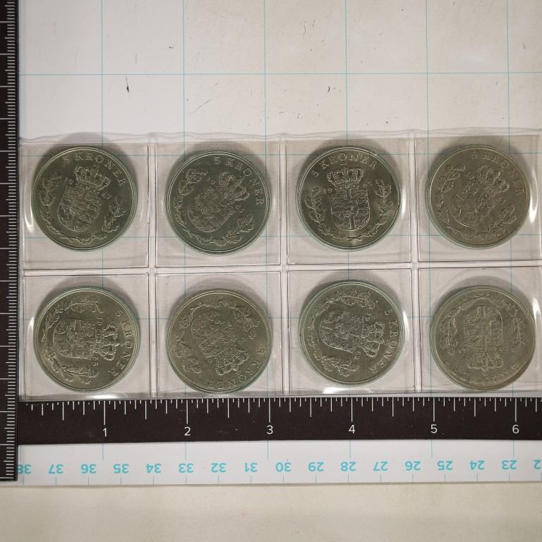 8 DENMARK UNC 5 KRONER COINS: 1960, 1961, 1962,