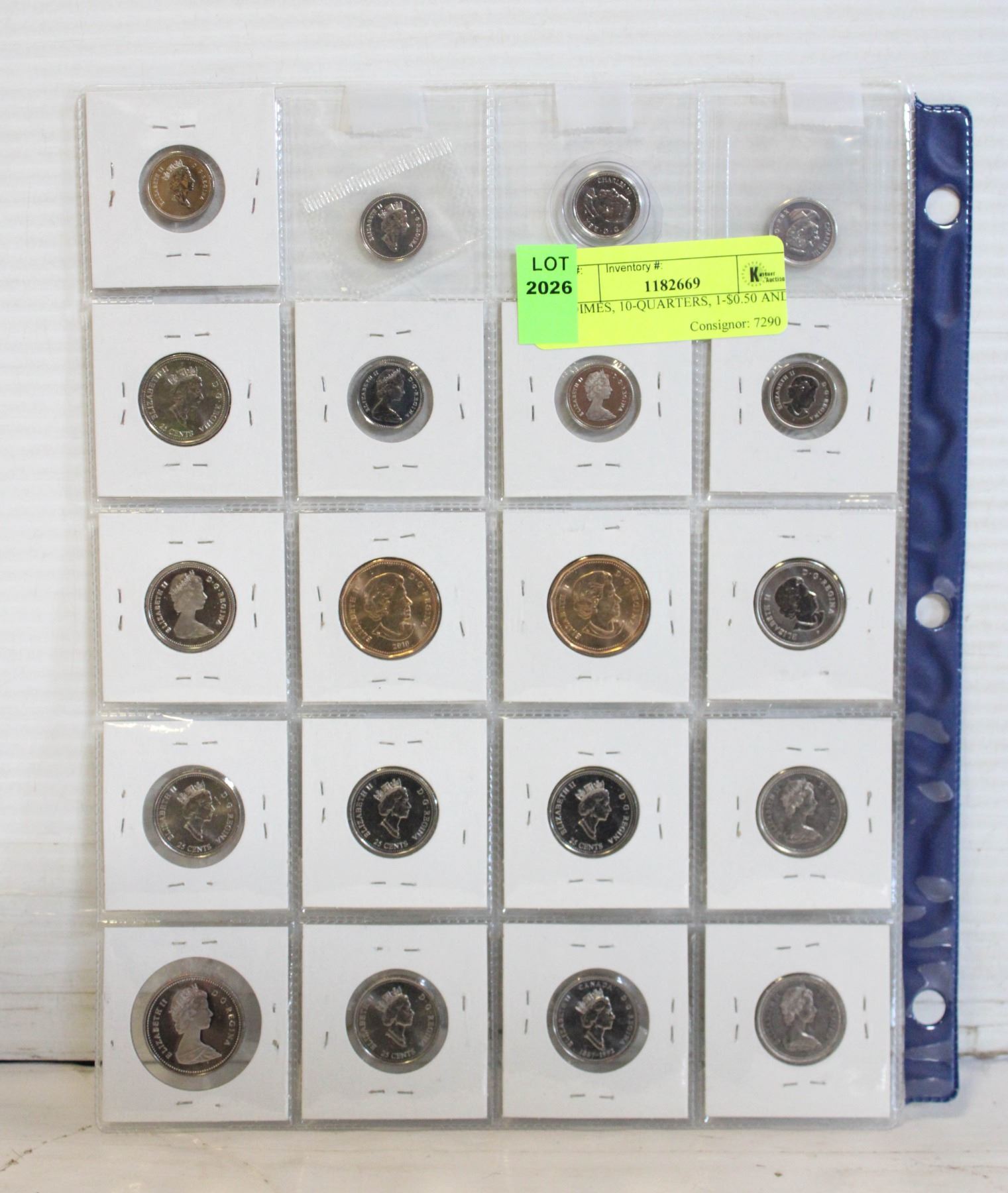 8-DIMES, 10-QUARTERS, 1-$0.50 AND