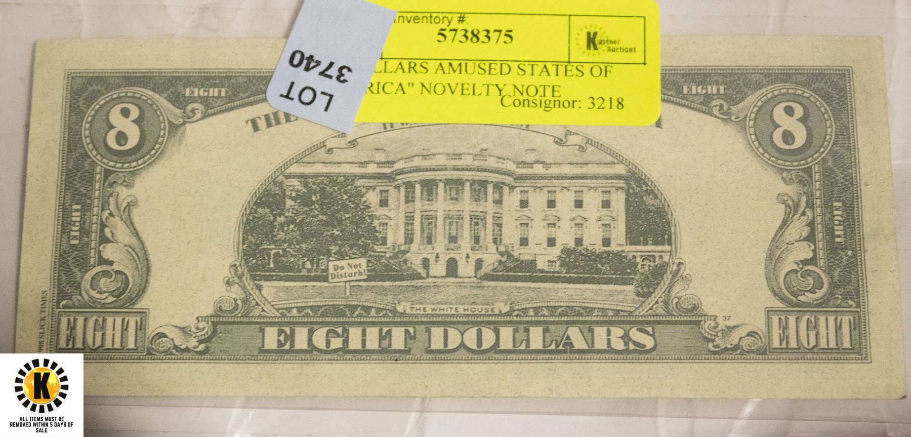 "8 DOLLARS AMUSED STATES OF AMERICA" NOVELTY NOTE